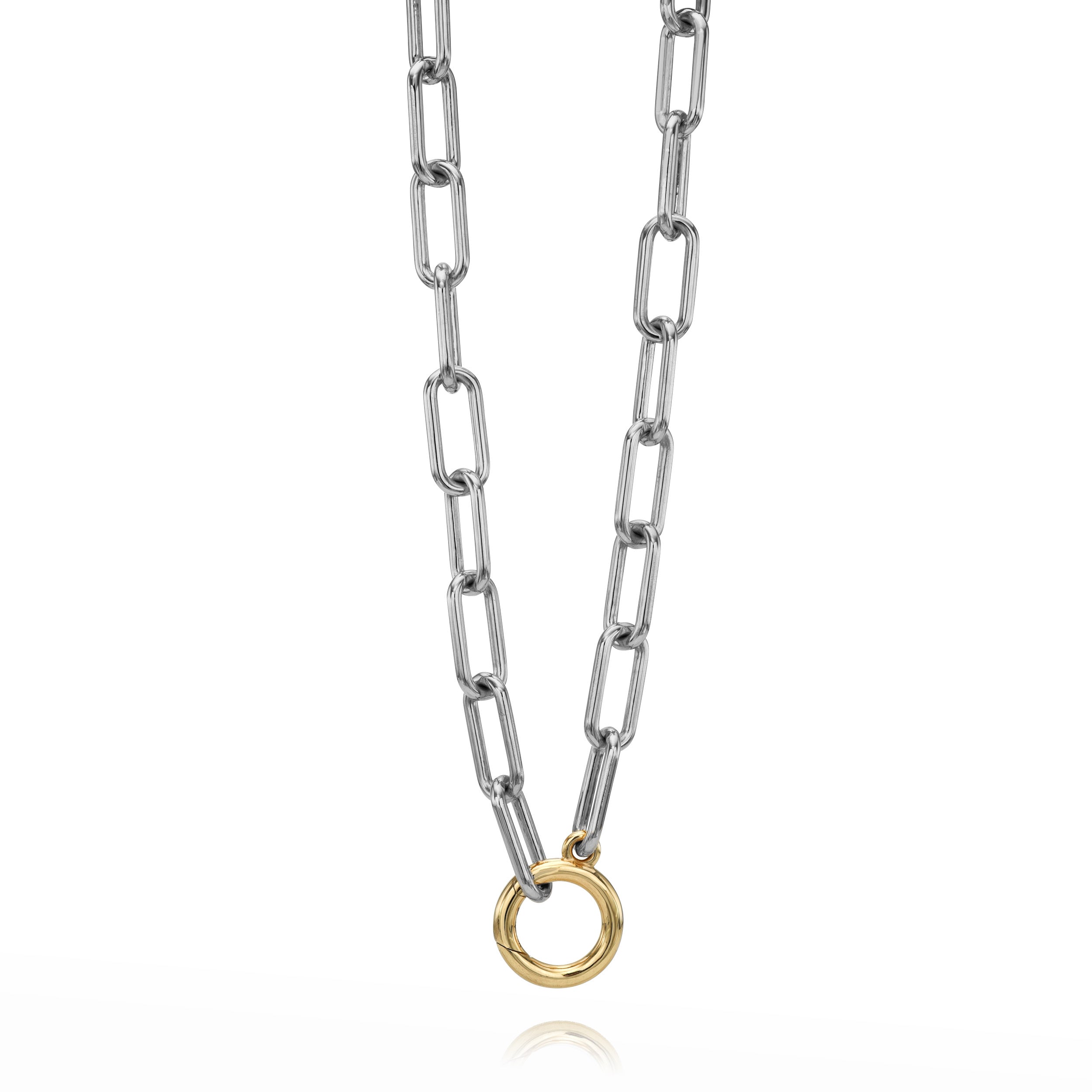 Our handcrafted platinum Libby necklace featuring an 18K yellow gold pendant enhancer.
