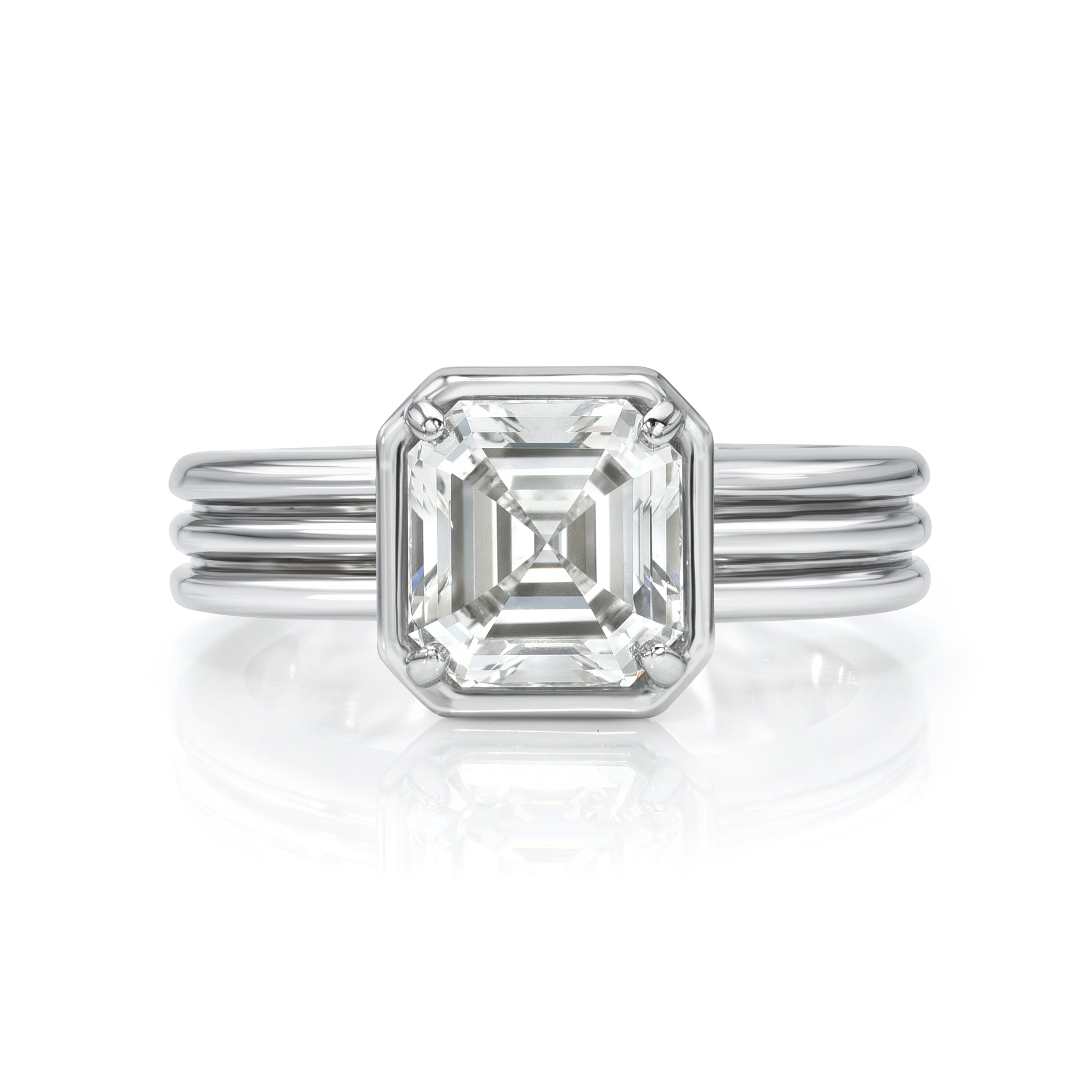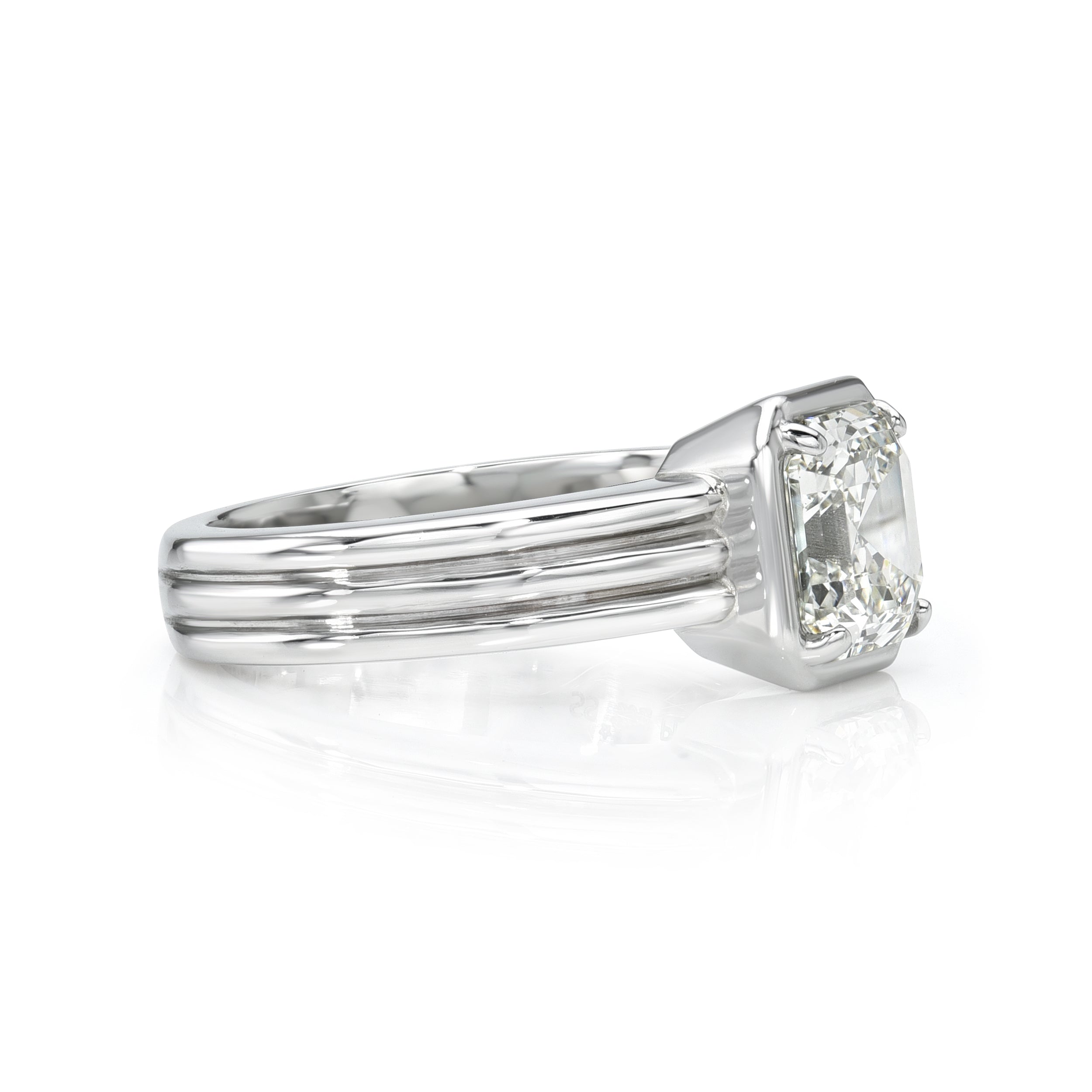 2.14ct K/VVS2 GIA certified Asscher cut diamond prong set in a handcrafted platinum mounting.