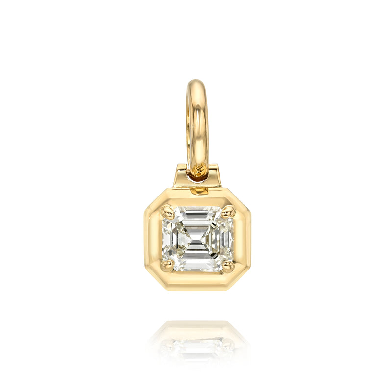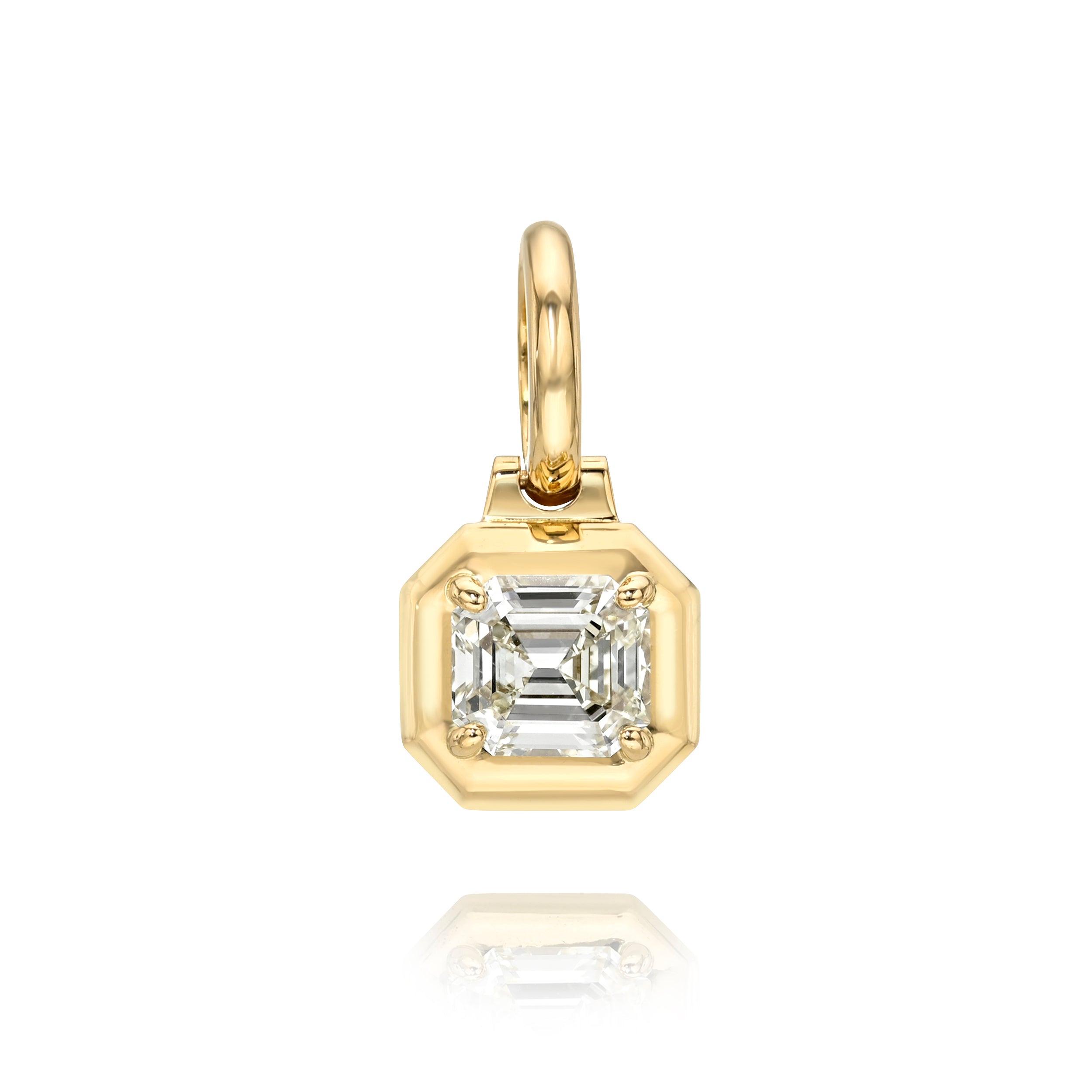 0.94ct L/VS1 GIA certified rectangular step cut diamond prong set in a handcrafted 18K yellow gold pendant.