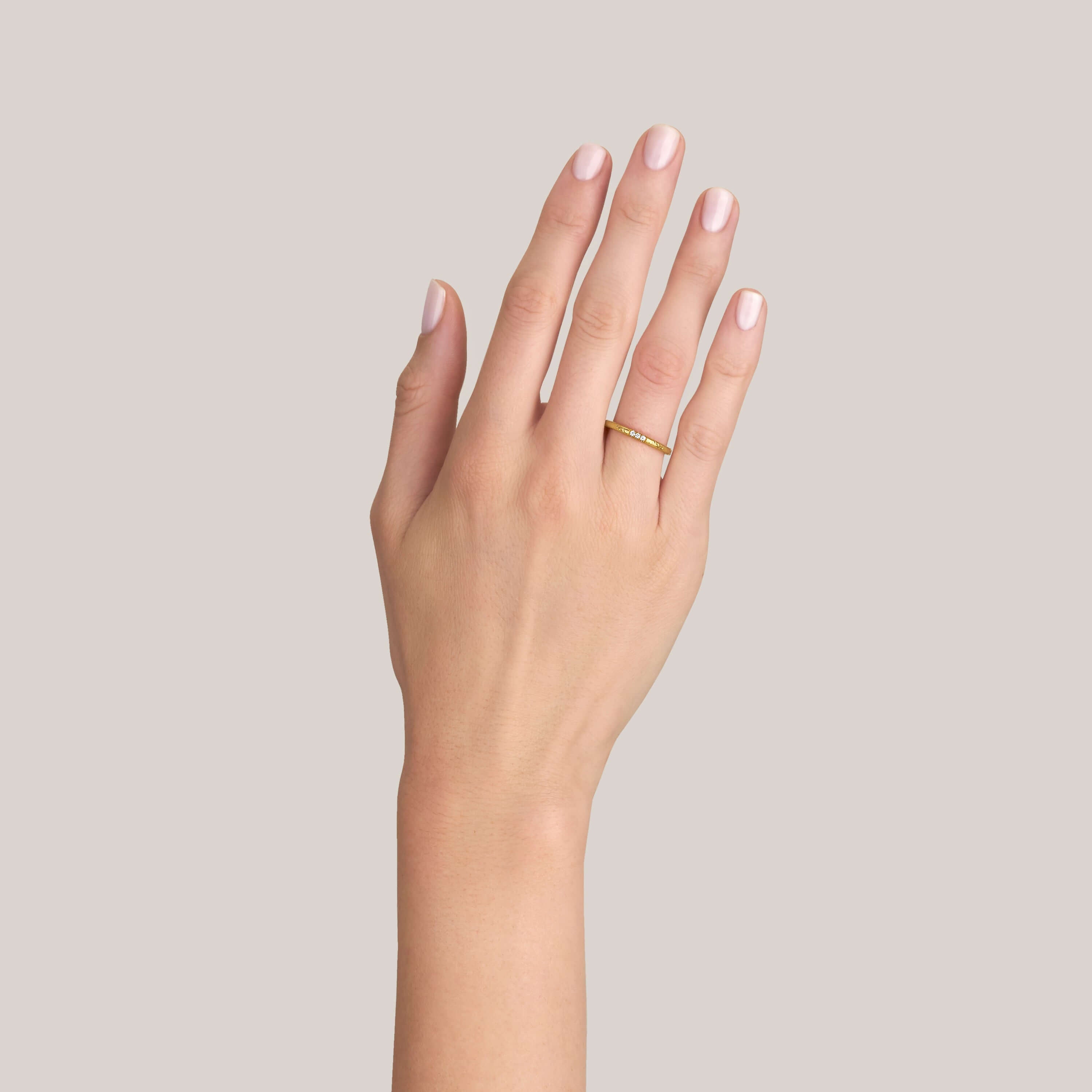Approximately 0.14ctw G-H/VS old European cut diamonds set in a handcrafted hammered 22K yellow gold band.
