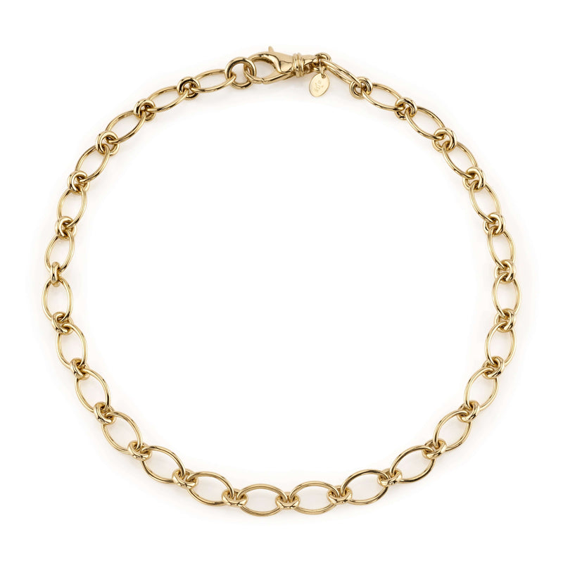 Handcrafted 18K yellow gold oval and round link necklace. Available from 16" to 30".