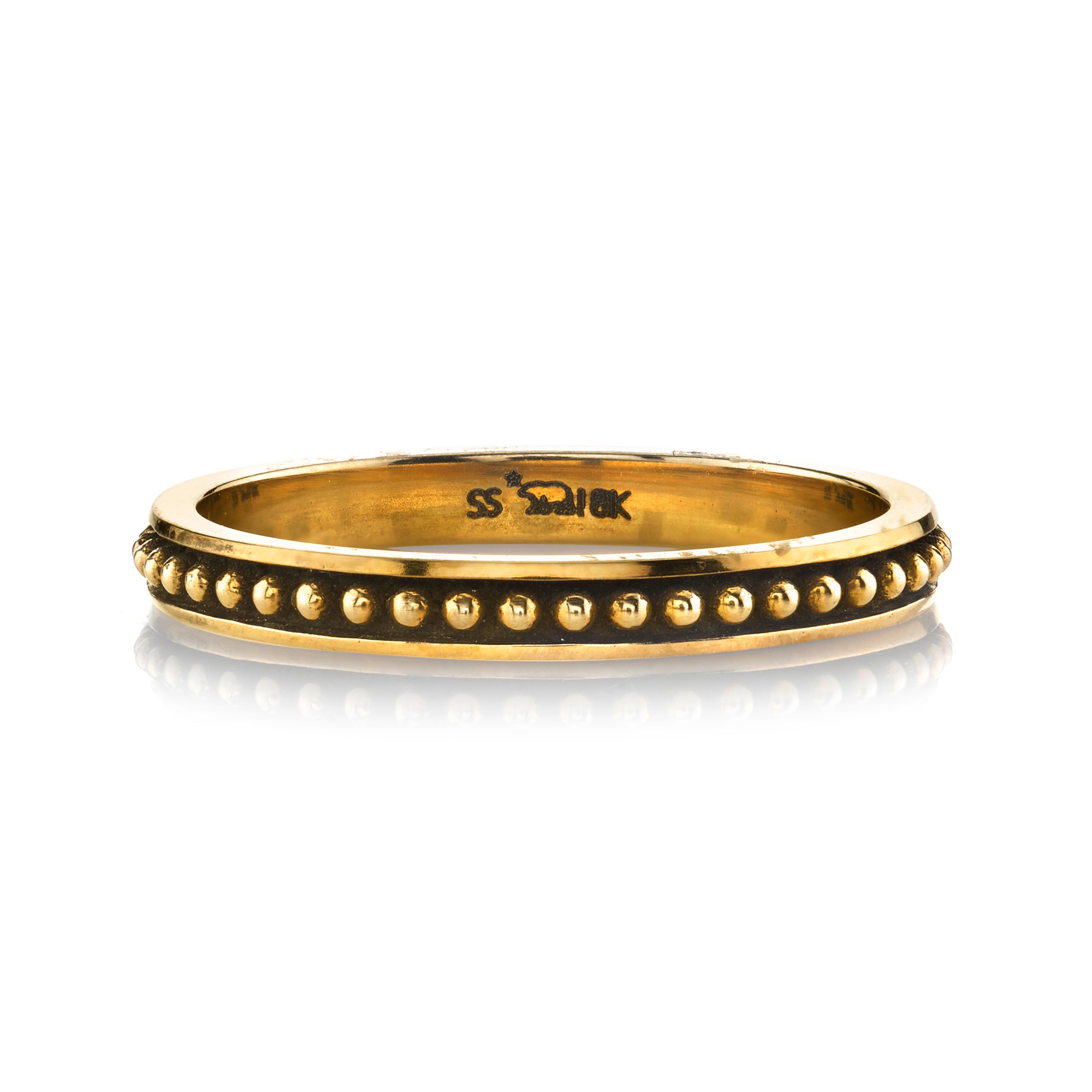 Handcrafted oxidized 18K gold beaded band.