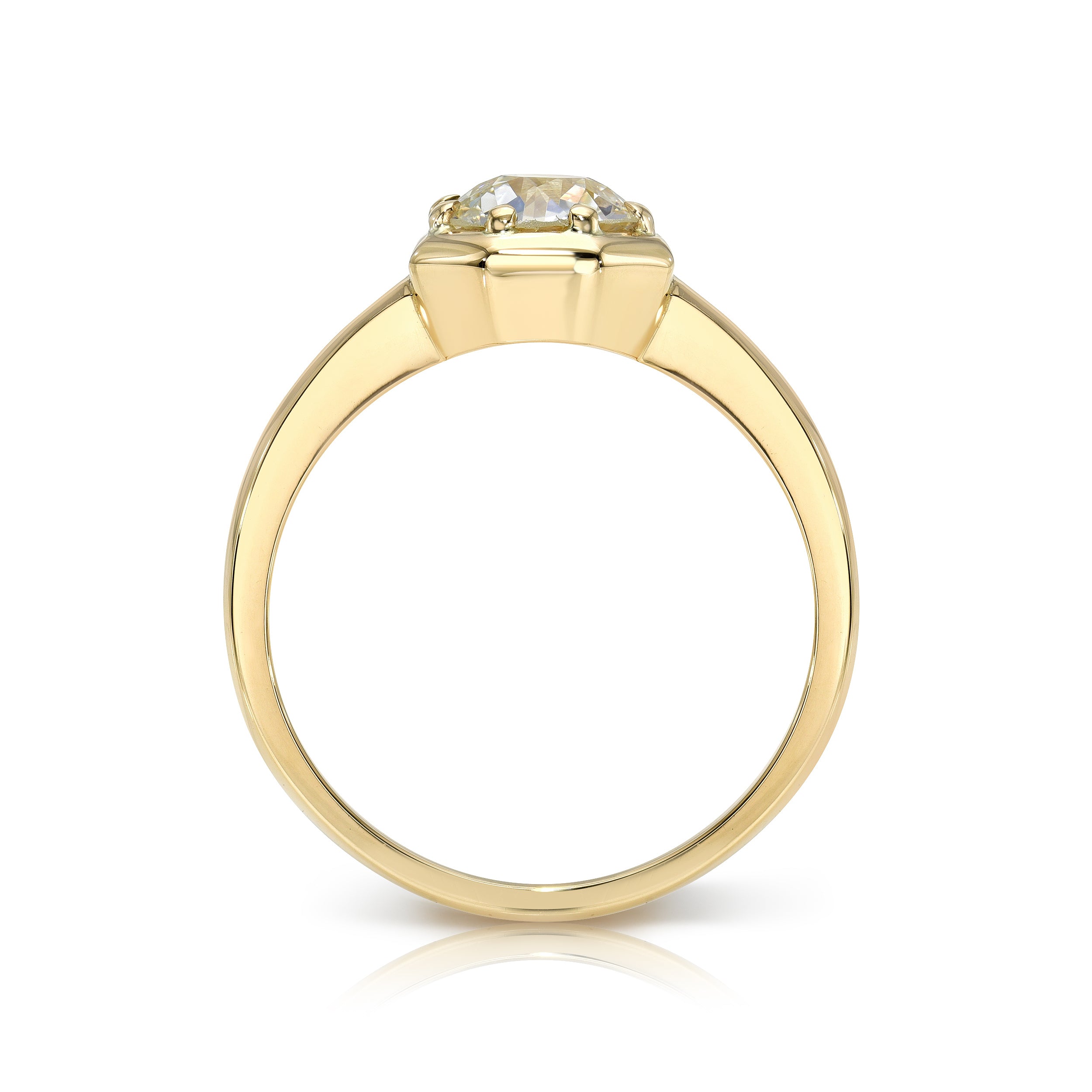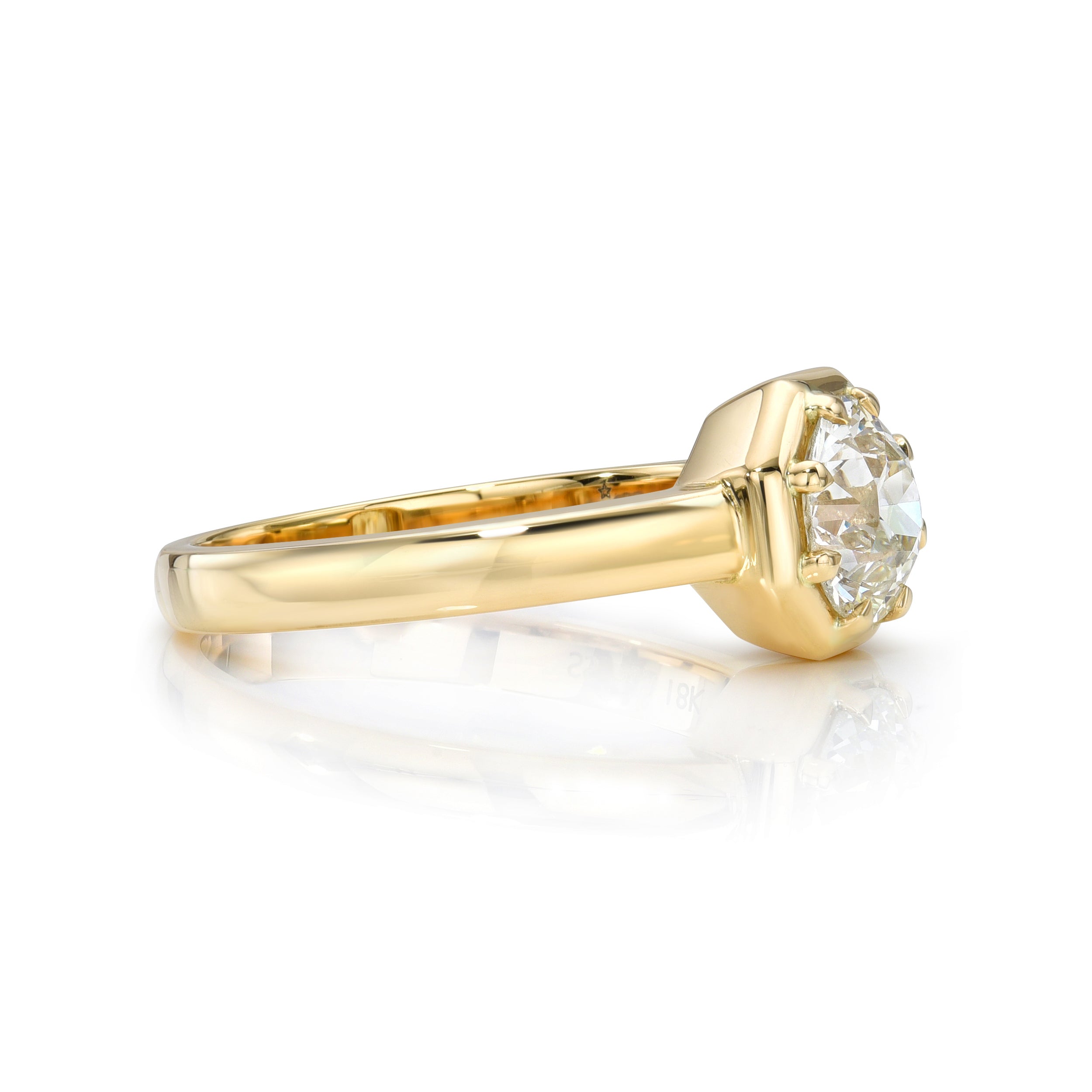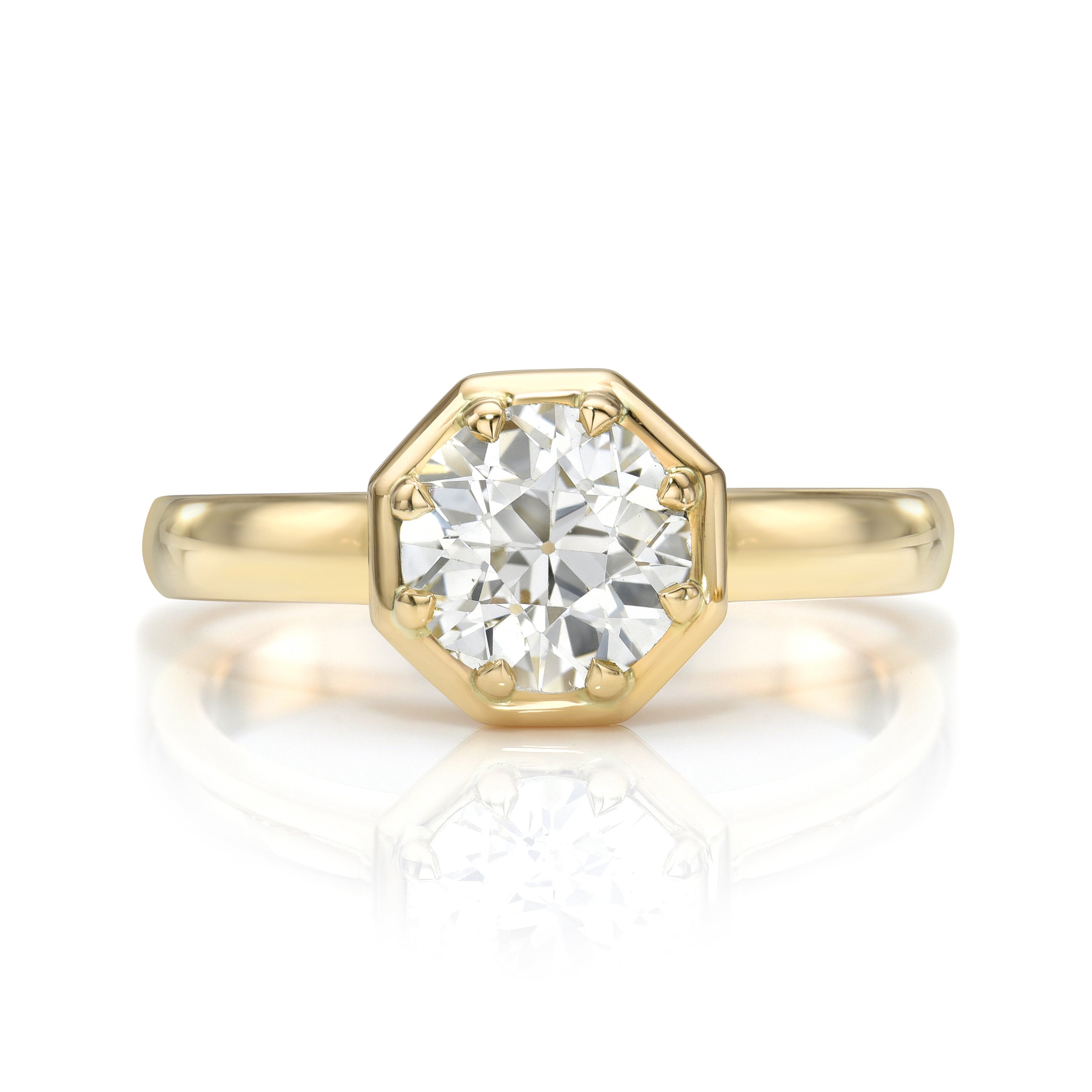 1.10ct L/SI1 GIA certified old European cut diamond prong set in a handcrafted 18K yellow gold mounting.