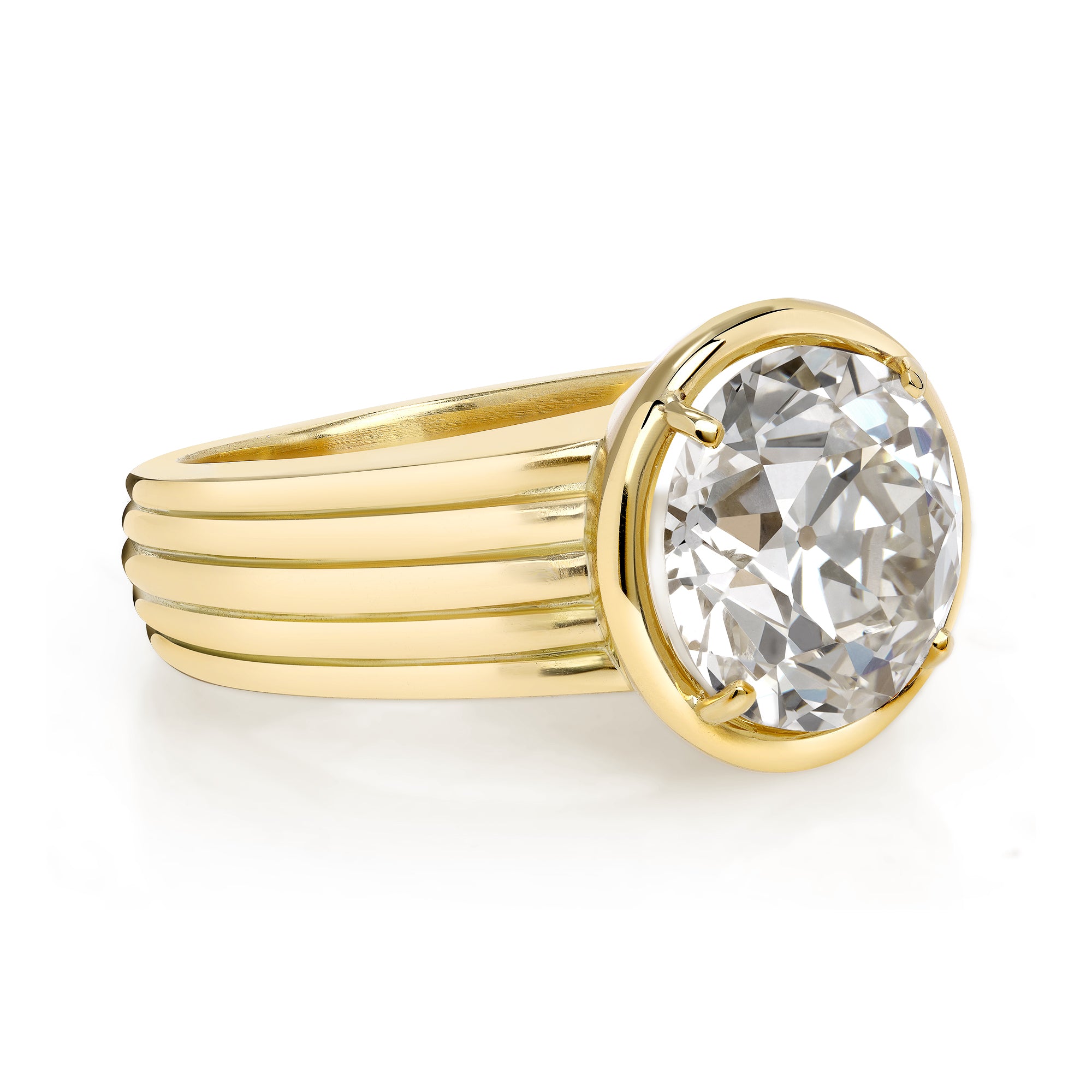 5.01ct L/VS1 GIA certified old European cut diamond prong set in a handcrafted 18K yellow gold mounting.