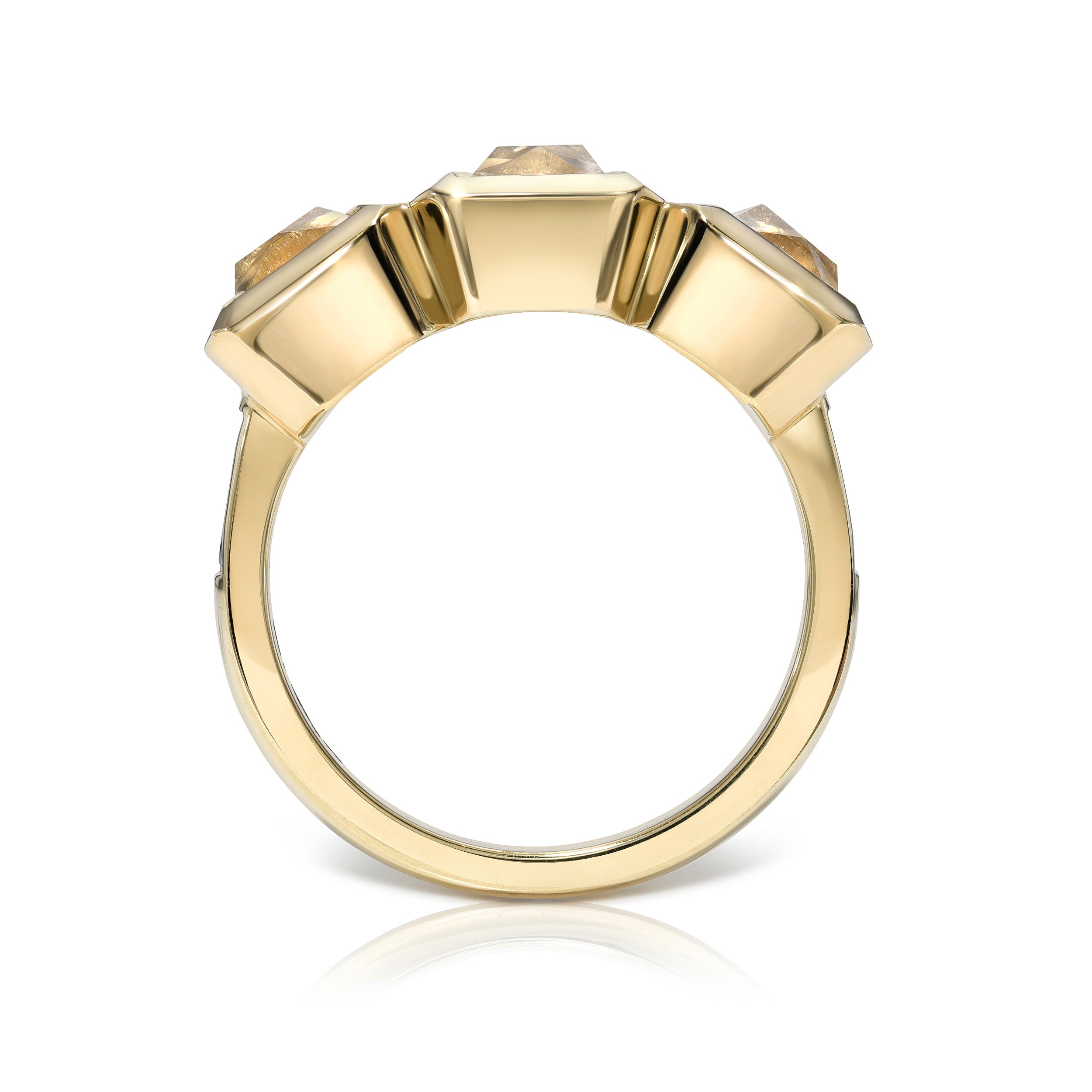 With their geometric lines, French cut diamonds reached their height of popularity in the Art Deco period. Square or rectangular in shape, French cuts feature a mix of step and triangular faceting, resulting in mirror-like flashes of brilliance. Our French cut diamonds are painstakingly hand-cut to order so that they fit seamlessly into our French cut diamond bands, or any of our other bespoke jewelry designs.