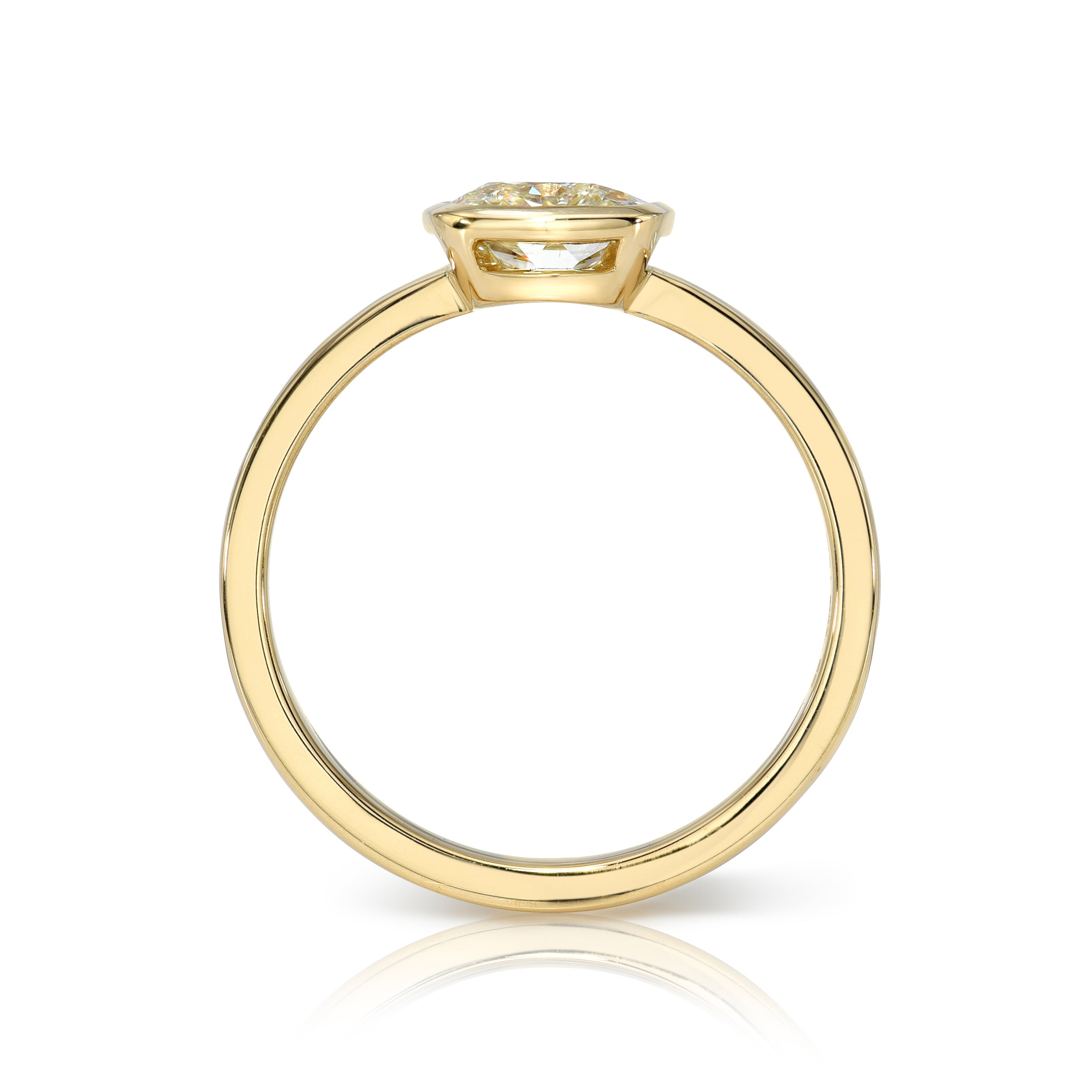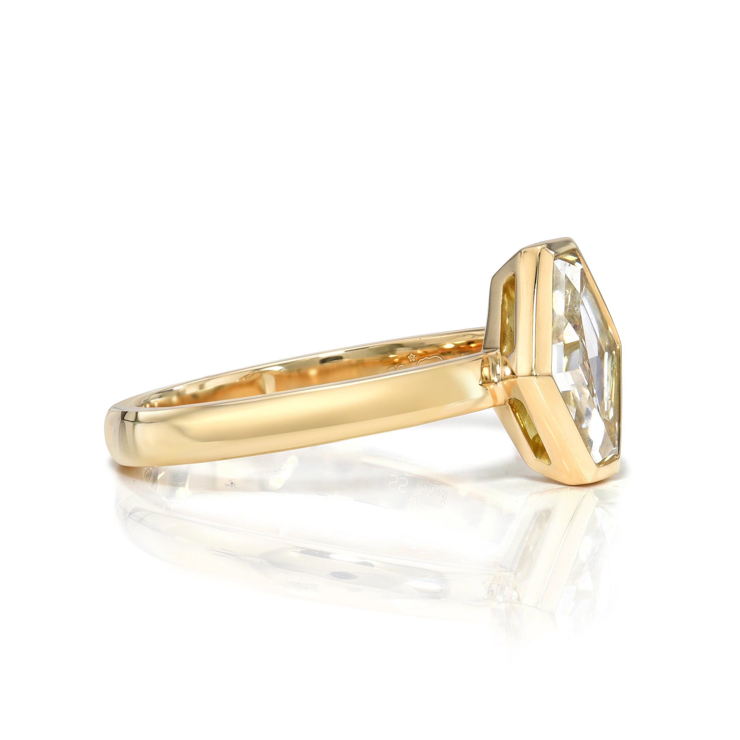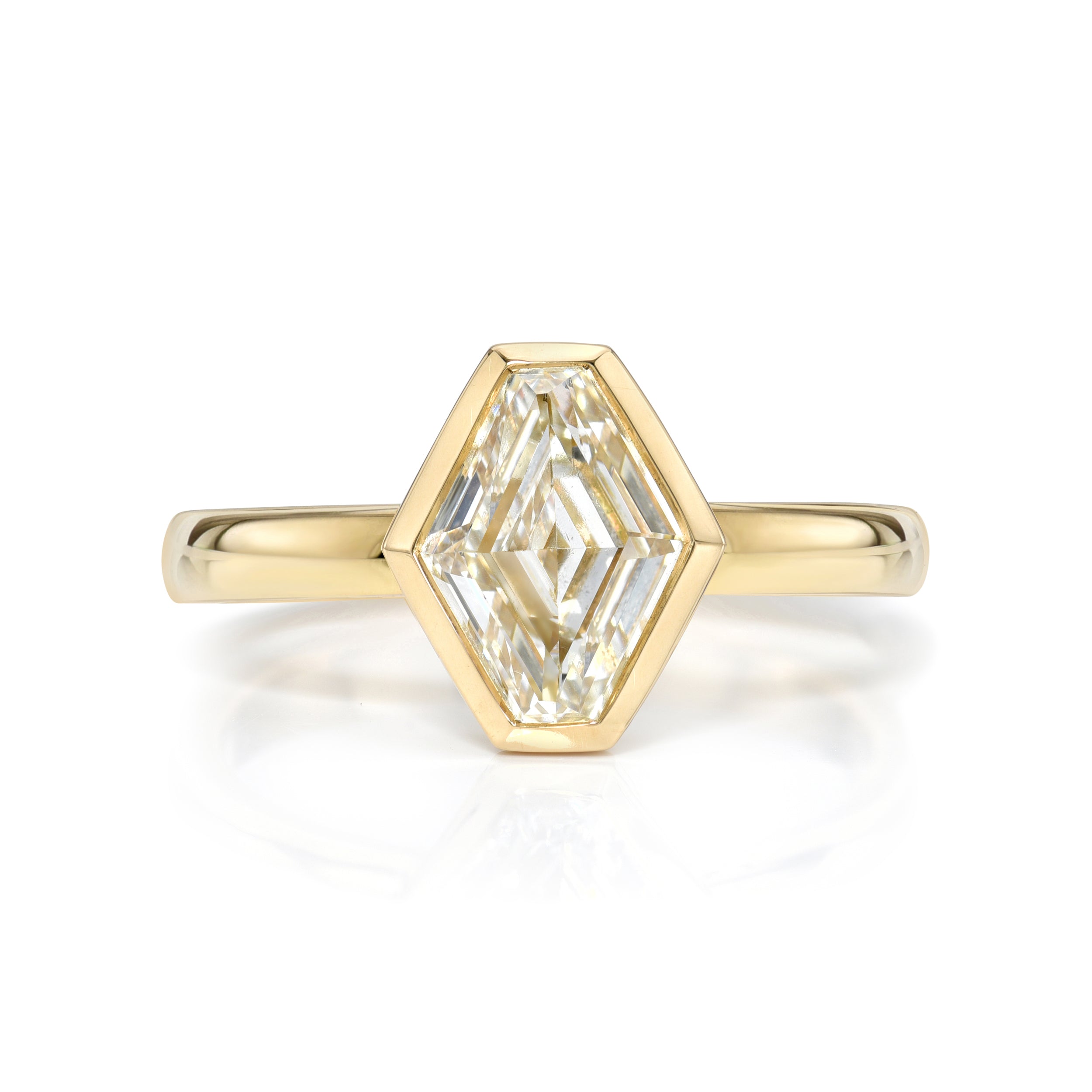 1.40ct J/VS2 GIA certified lozenge cut diamond bezel set in a handcrafted 18K yellow gold mounting.