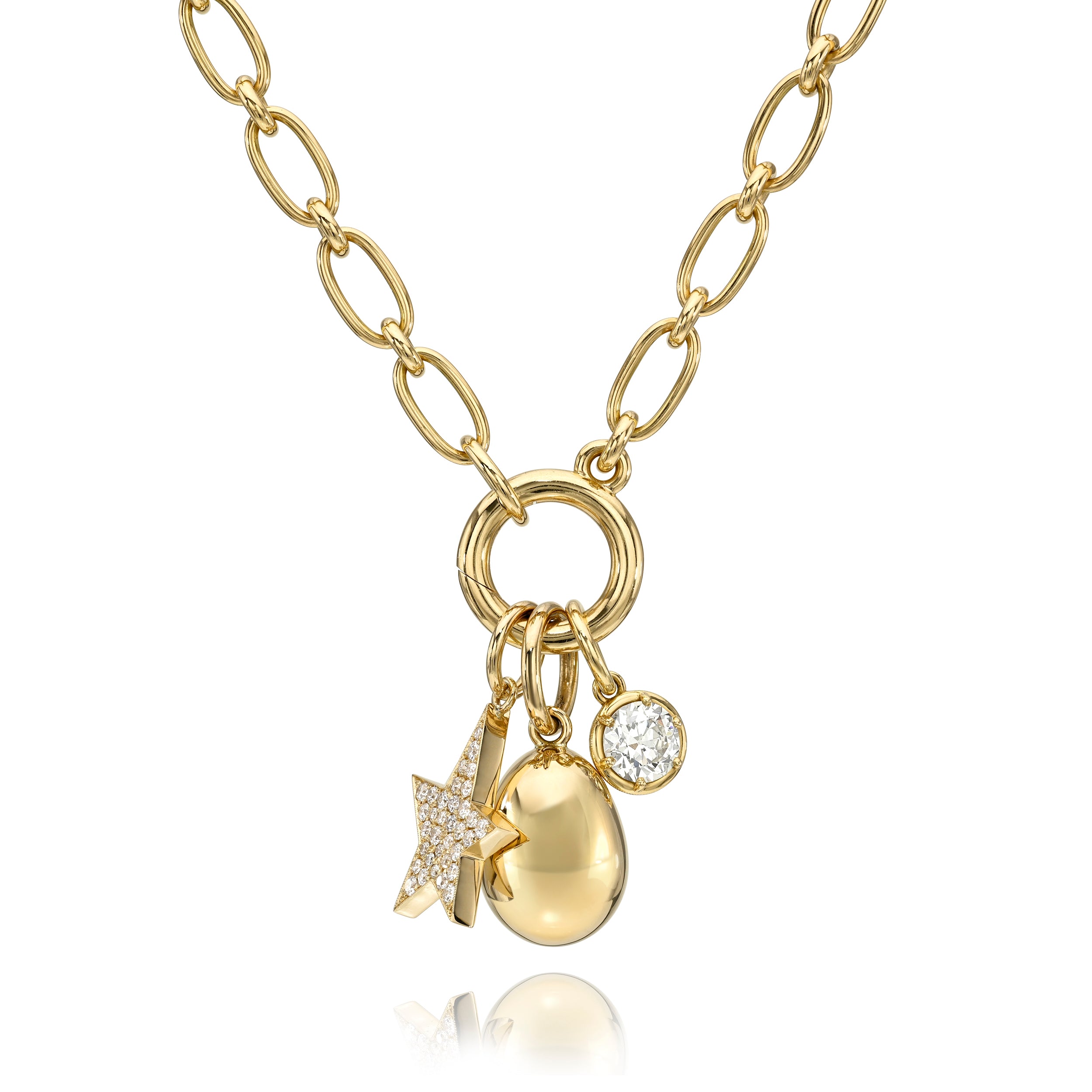 Handcrafted high polish 18K yellow gold egg-shaped pendant. Also shown here on our 18K yellow gold Lo Annex chain.