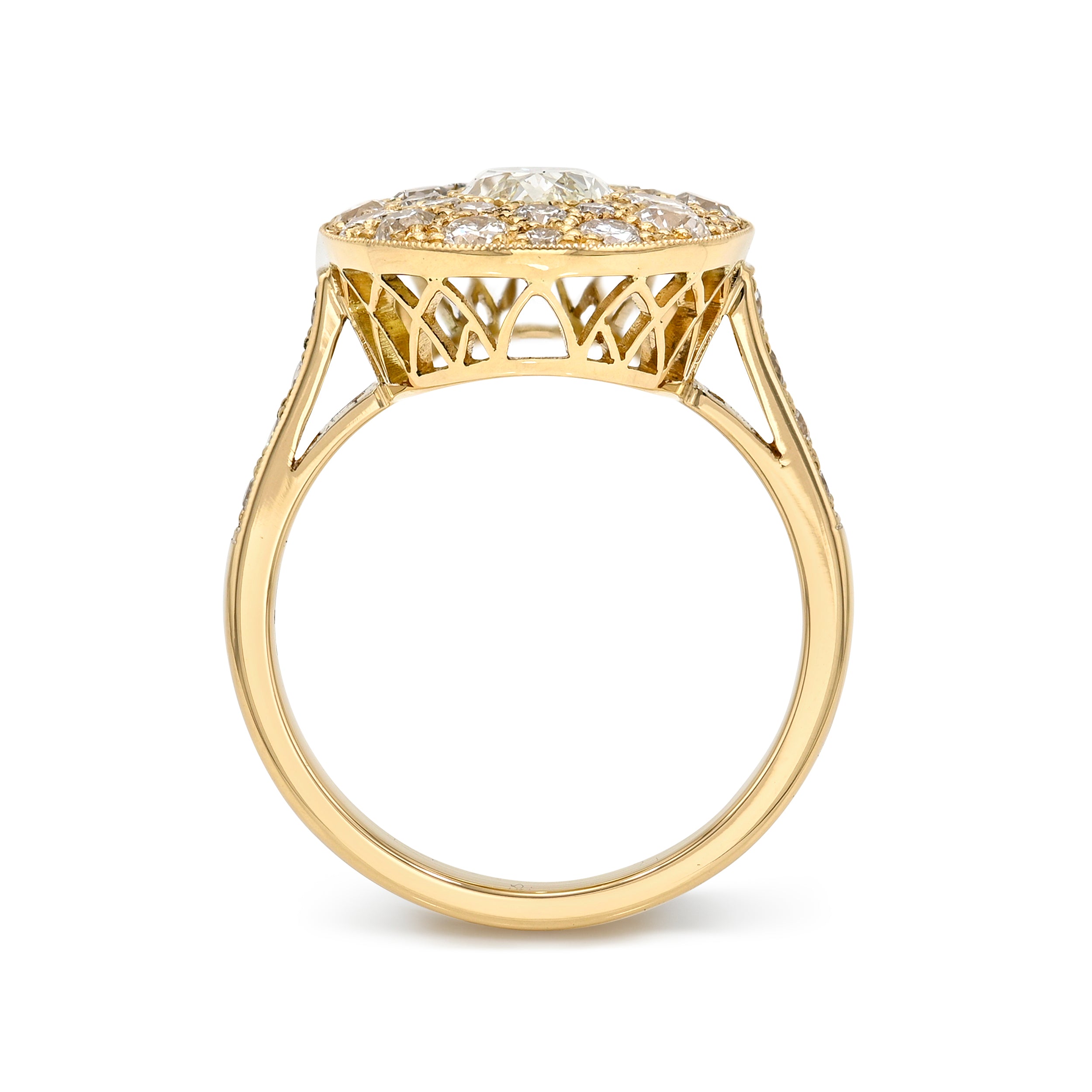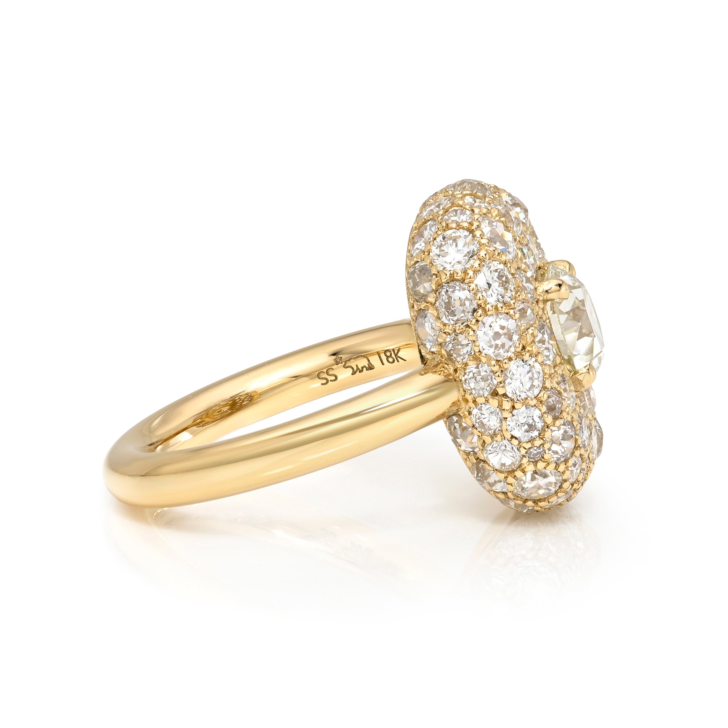 The unique combination of stones used in each of our signature Cobblestone pieces makes them completely original. When a piece is designed, the first step is to select stones from our vast collection of vintage diamonds and gems. These include a variety of shapes, sizes and colors. The stones are then laid out in a pattern that compliments the shape of the setting and the stones. Like a snowflake or a fingerprint, each resulting pattern is unique, making it truly one of a kind.