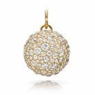 22.24ctw varying old cut and round brilliant cut diamonds set in a handcrafted sphere-shaped 18K yellow gold pendant.