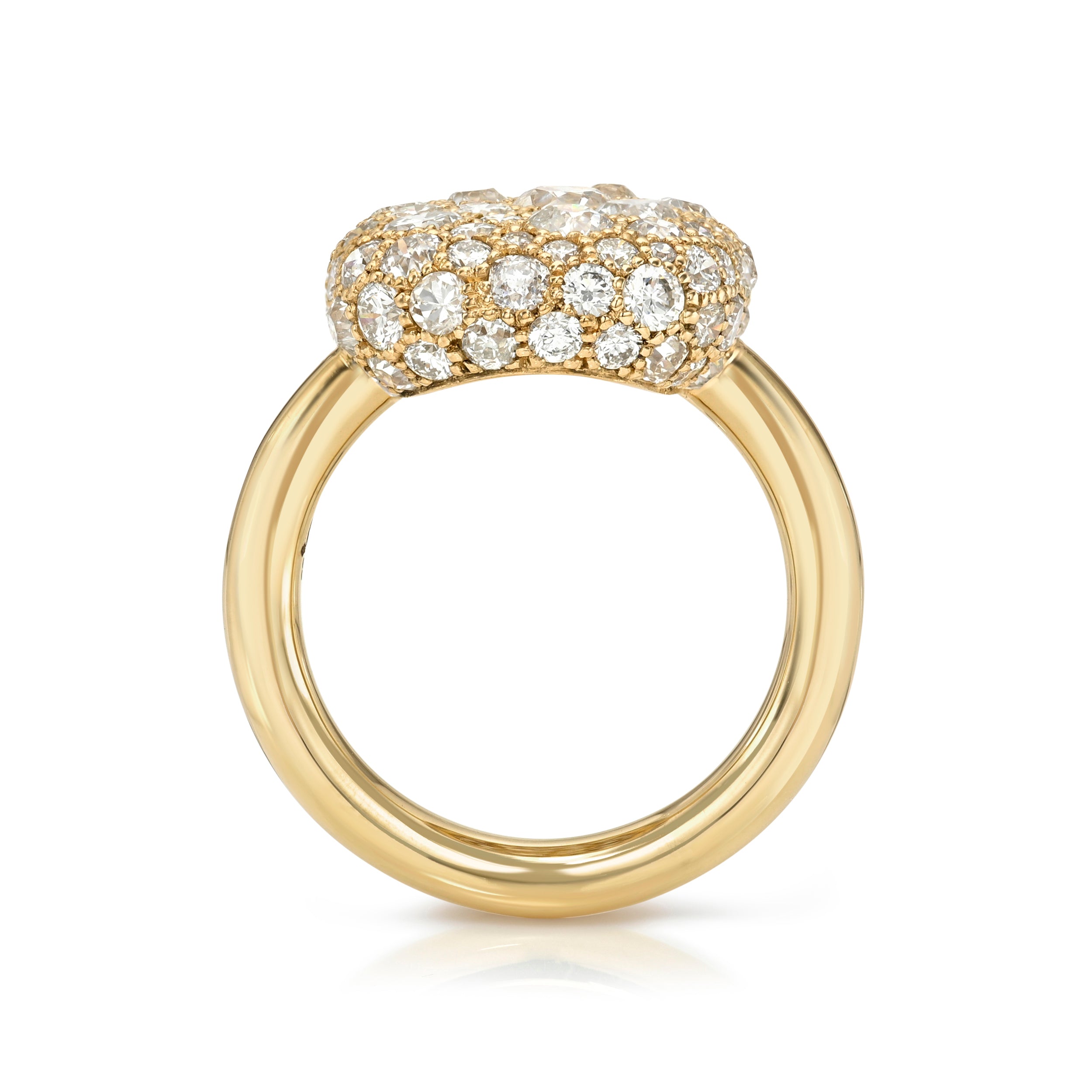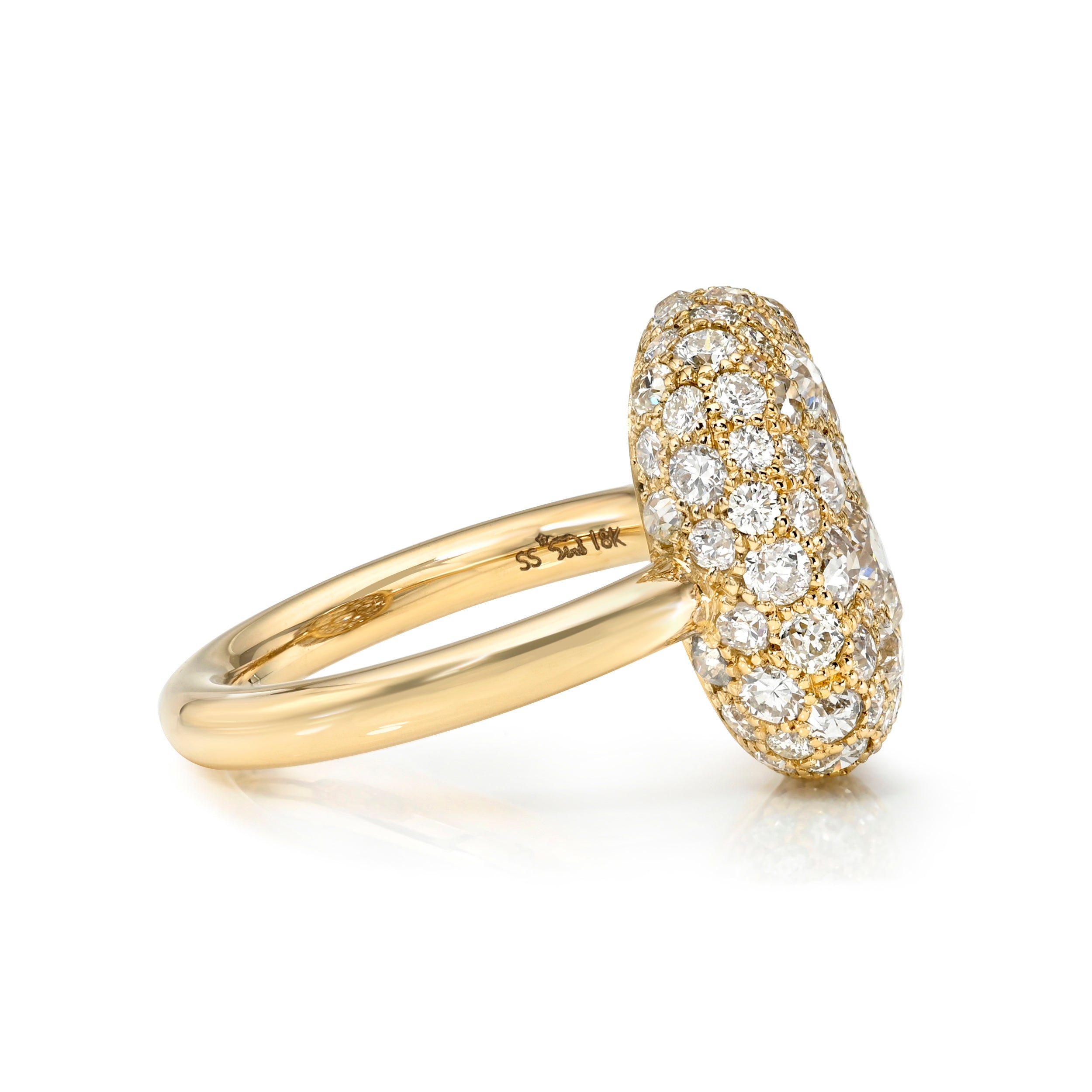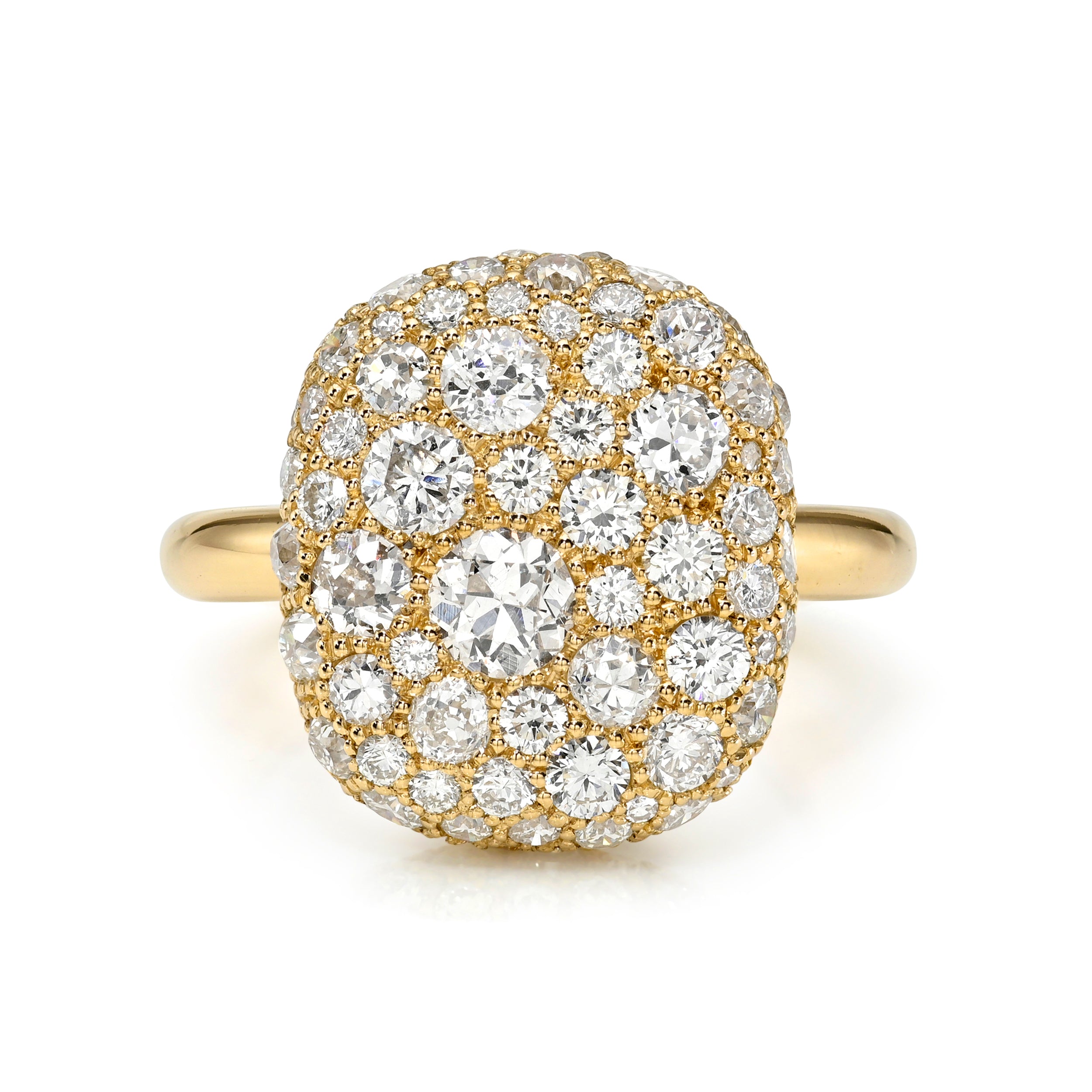 3.83ctw various old cut and round brilliant cut diamonds cobblestone set in a handcrafted 18K yellow gold mounting.