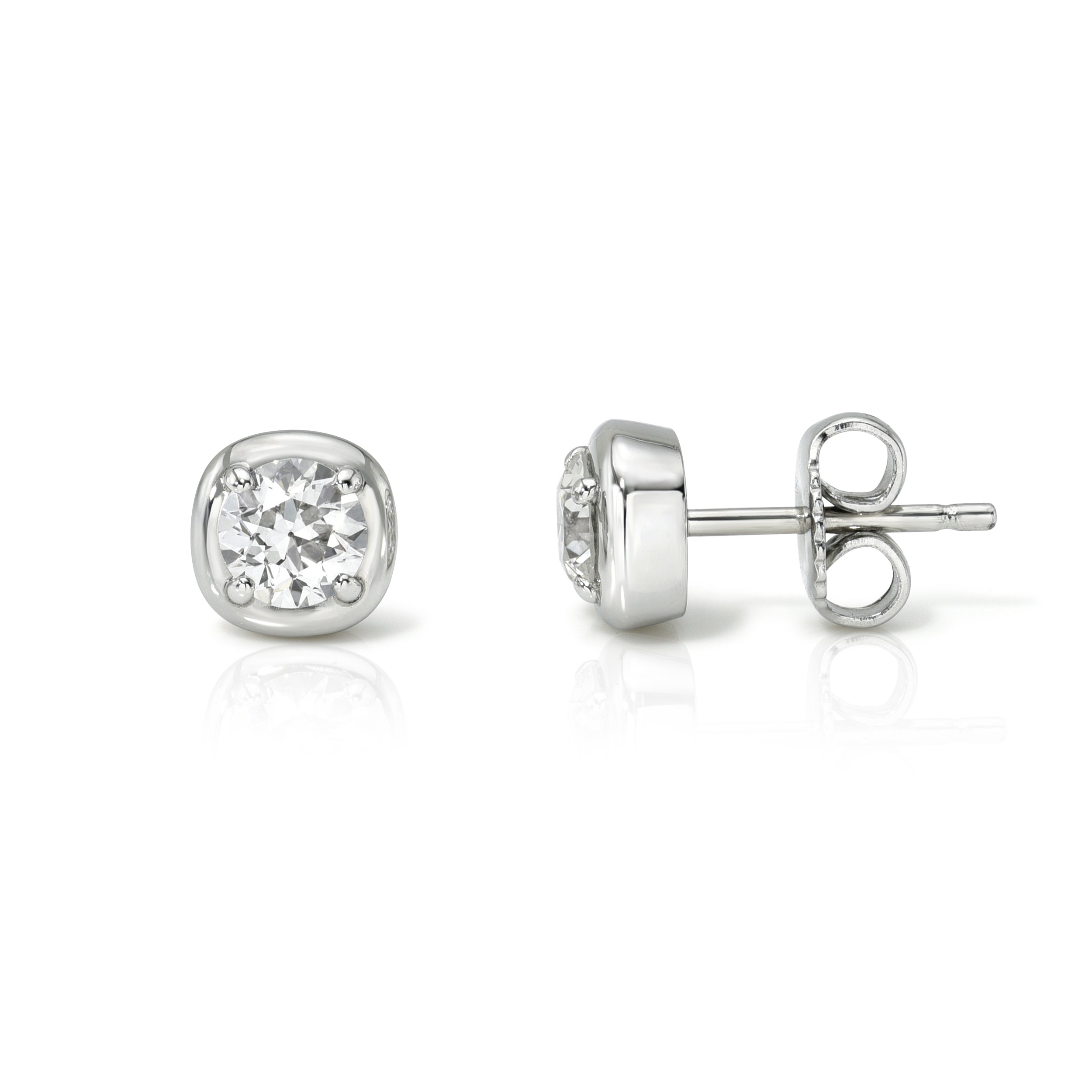 0.82ctw G/SI-VS old European cut diamonds prong set in handcrafted platinum stud earrings.