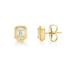 1.40ctw N/VVS2-SI1 GIA certified emerald cut diamonds prong set in handcrafted 18K yellow gold stud earrings.