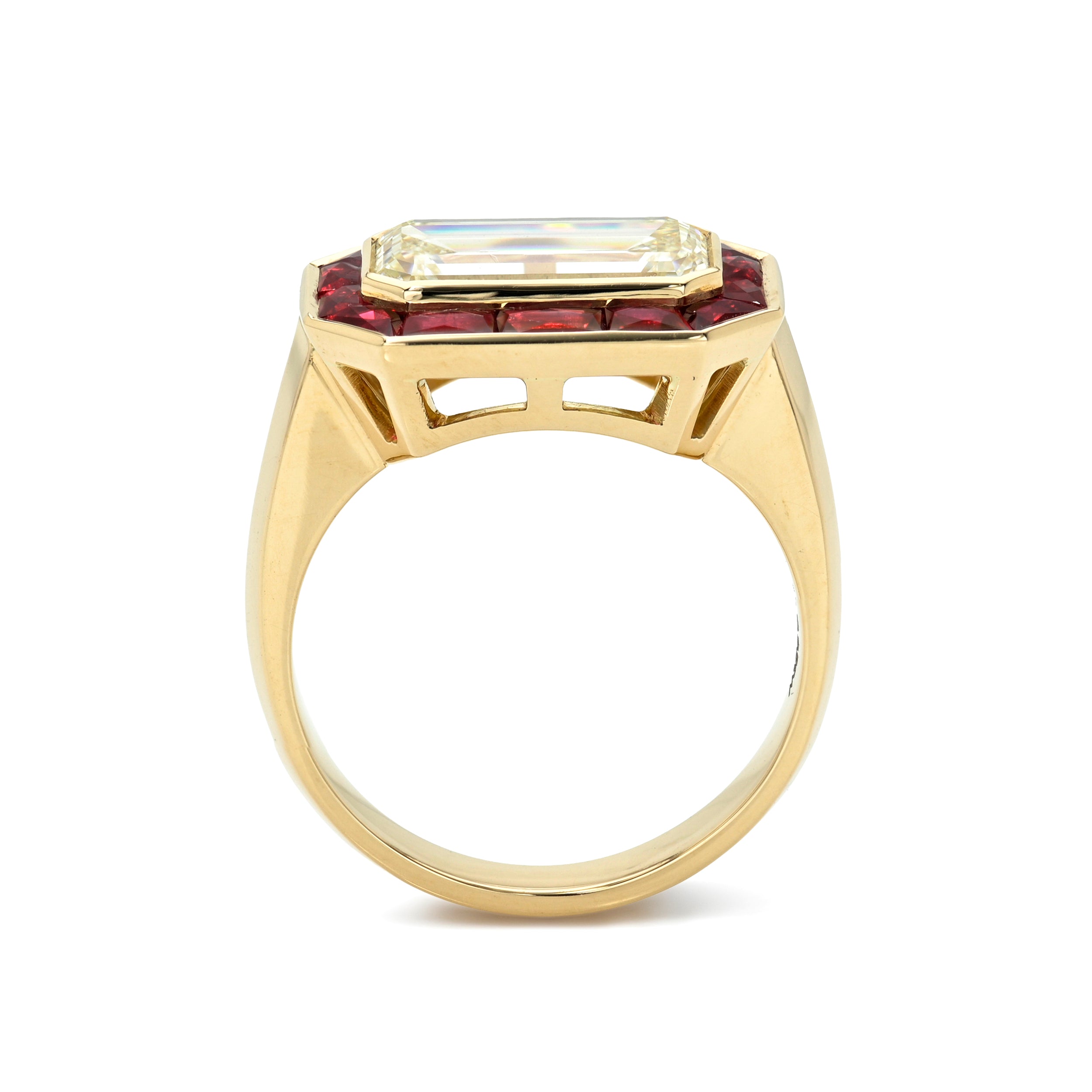 Though its origins can be traced centuries before, the emerald cut diamond gained popularity during the 1920s Art Deco period when clean lines and symmetry were the cornerstone of design. With a sleek parallel facet pattern and rectangular or square shape, emerald cut diamonds offer an understated “hall of mirrors” effect which is unlike any other diamond cut. Antique emerald cut diamonds, with their dramatic, clipped corners and open culets, were often recut into modern shapes and are exceedingly rare to source.