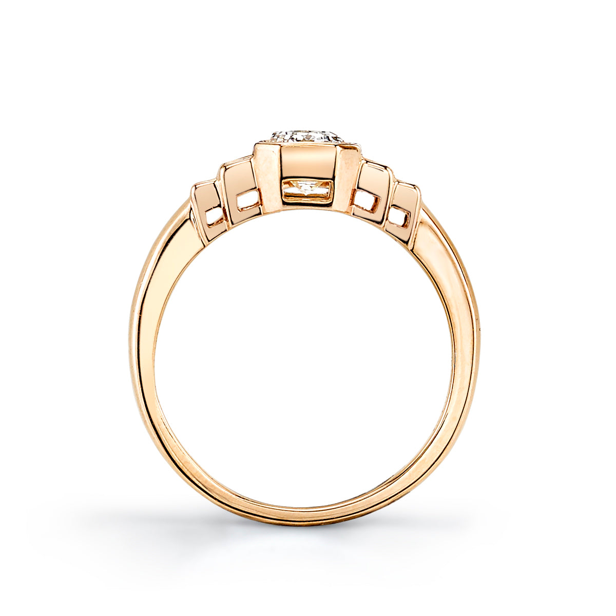 Though its origins can be traced centuries before, the emerald cut diamond gained popularity during the 1920s Art Deco period when clean lines and symmetry were the cornerstone of design. With a sleek parallel facet pattern and rectangular or square shape, emerald cut diamonds offer an understated “hall of mirrors” effect which is unlike any other diamond cut. Antique emerald cut diamonds, with their dramatic, clipped corners and open culets, were often recut into modern shapes and are exceedingly rare to source.