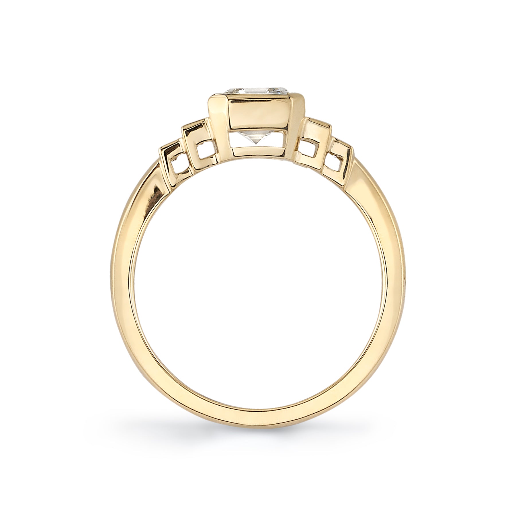 SINGLE STONE LEAH RING featuring 1.04ct K/VS2 GIA certified emerald cut diamond bezel set in a handcrafted 18K yellow gold mounting,