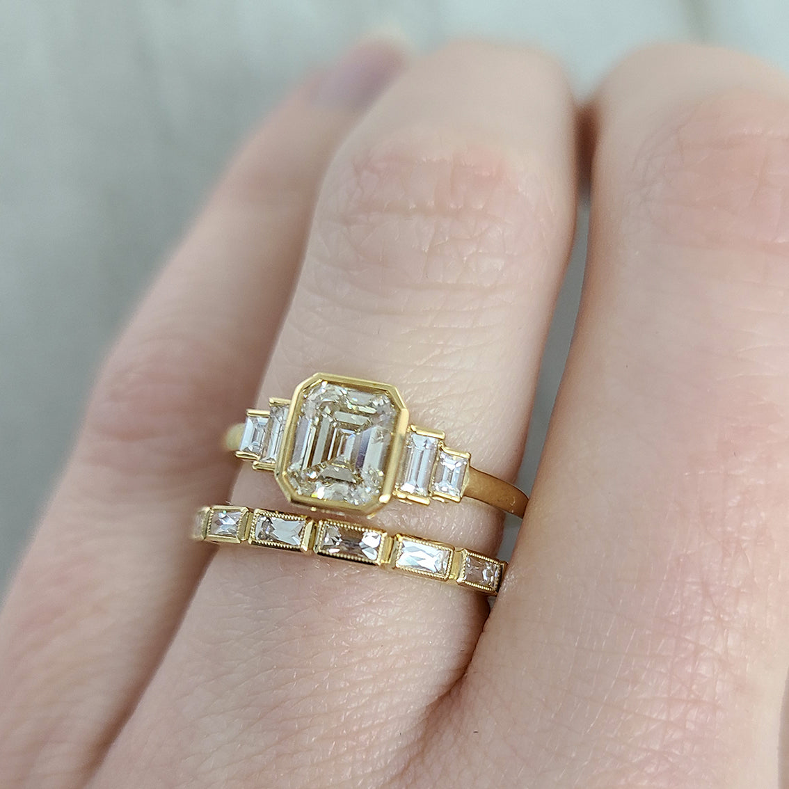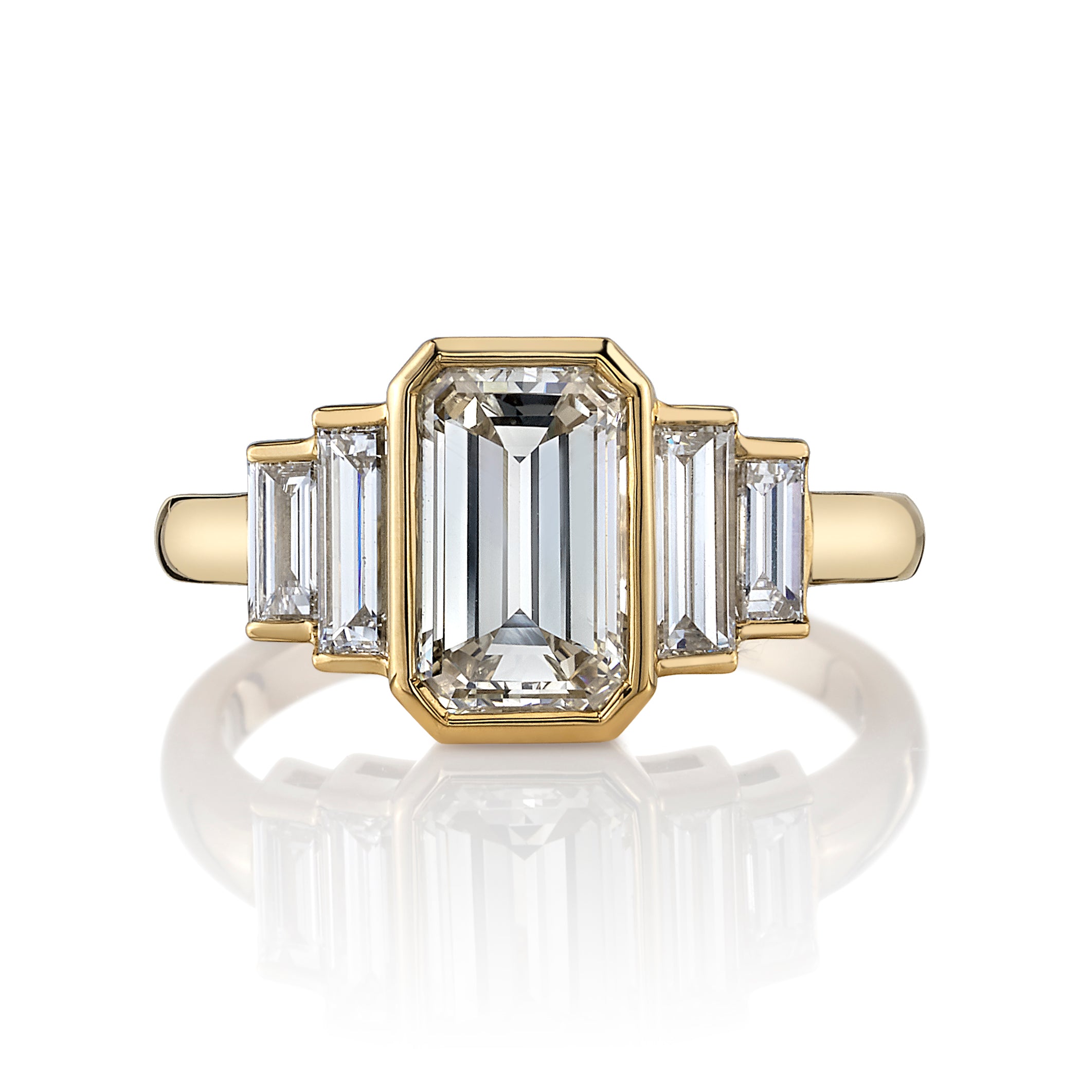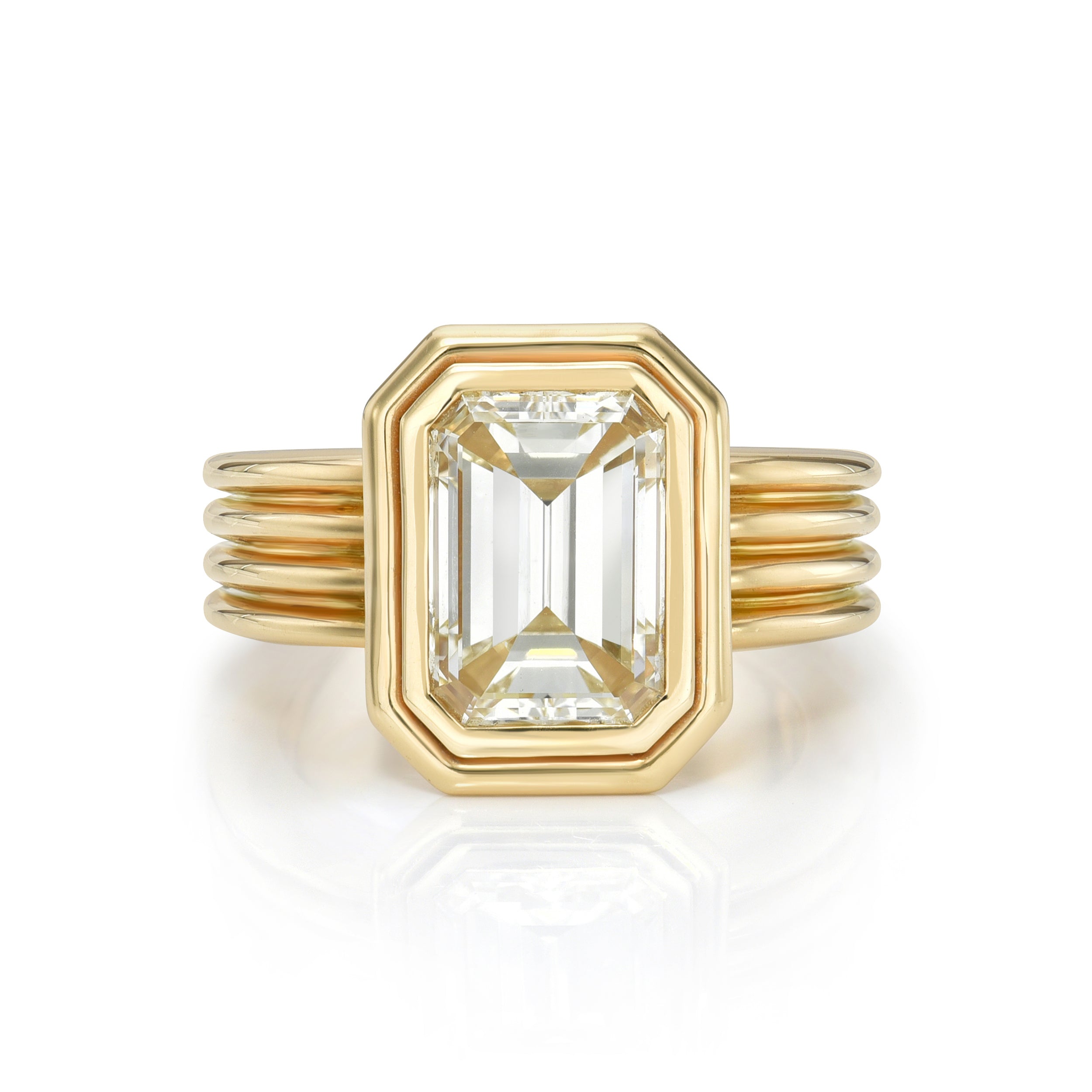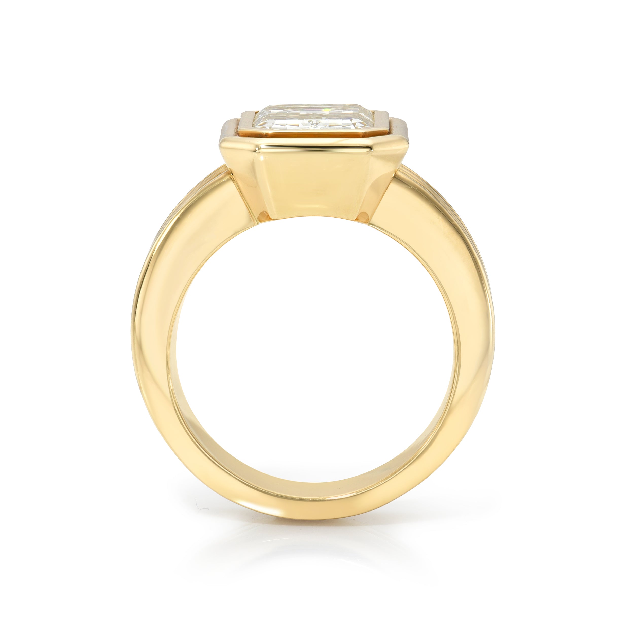 SINGLE STONE LAURIE RING featuring 2.00ct N/VS2 GIA certified emerald cut diamond with 0.24ctw baguette cut accent diamonds bezel set in a handcrafted 18K yellow gold mounting.