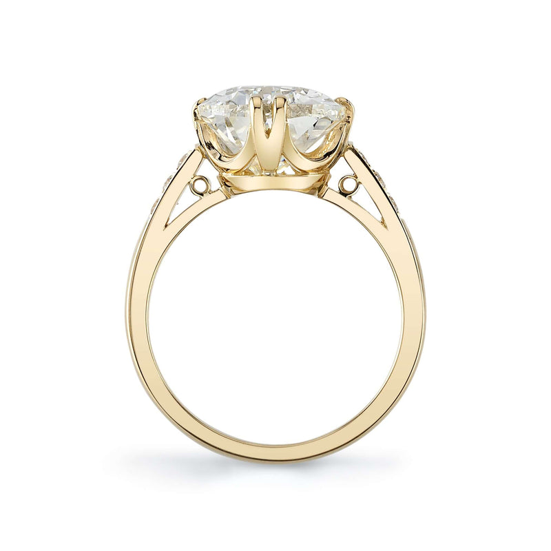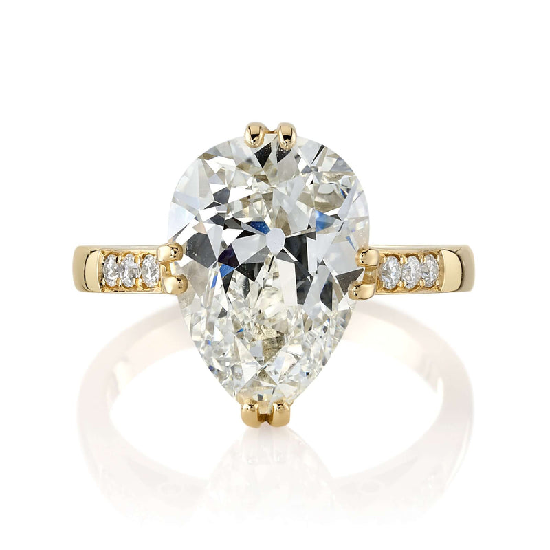 5.00ct L/VVS1 GIA certified antique pear shaped diamond with 0.11ctw old European cut accent diamonds set in a handcrafted 18K yellow gold mounting.