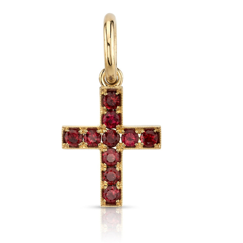 Approximately 0.80ctw round cut gemstones pavé set in a handcrafted 18K yellow gold cross pendant. Cross measures 14.20mm x 17mm. Price does not include necklace.