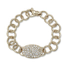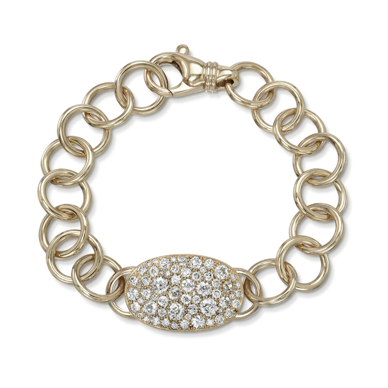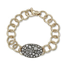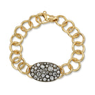 Approximately 3.45ctw various old cut and round brilliant cut diamonds set in a handcrafted 18K gold oval plate on our 18K gold Club bracelet. Available in an oxidized or polished finish.