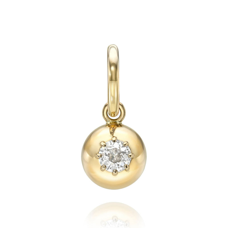 0.38ct H-I/I1 old European cut diamond prong set in a handcrafted 18K yellow gold sphere shaped pendant.