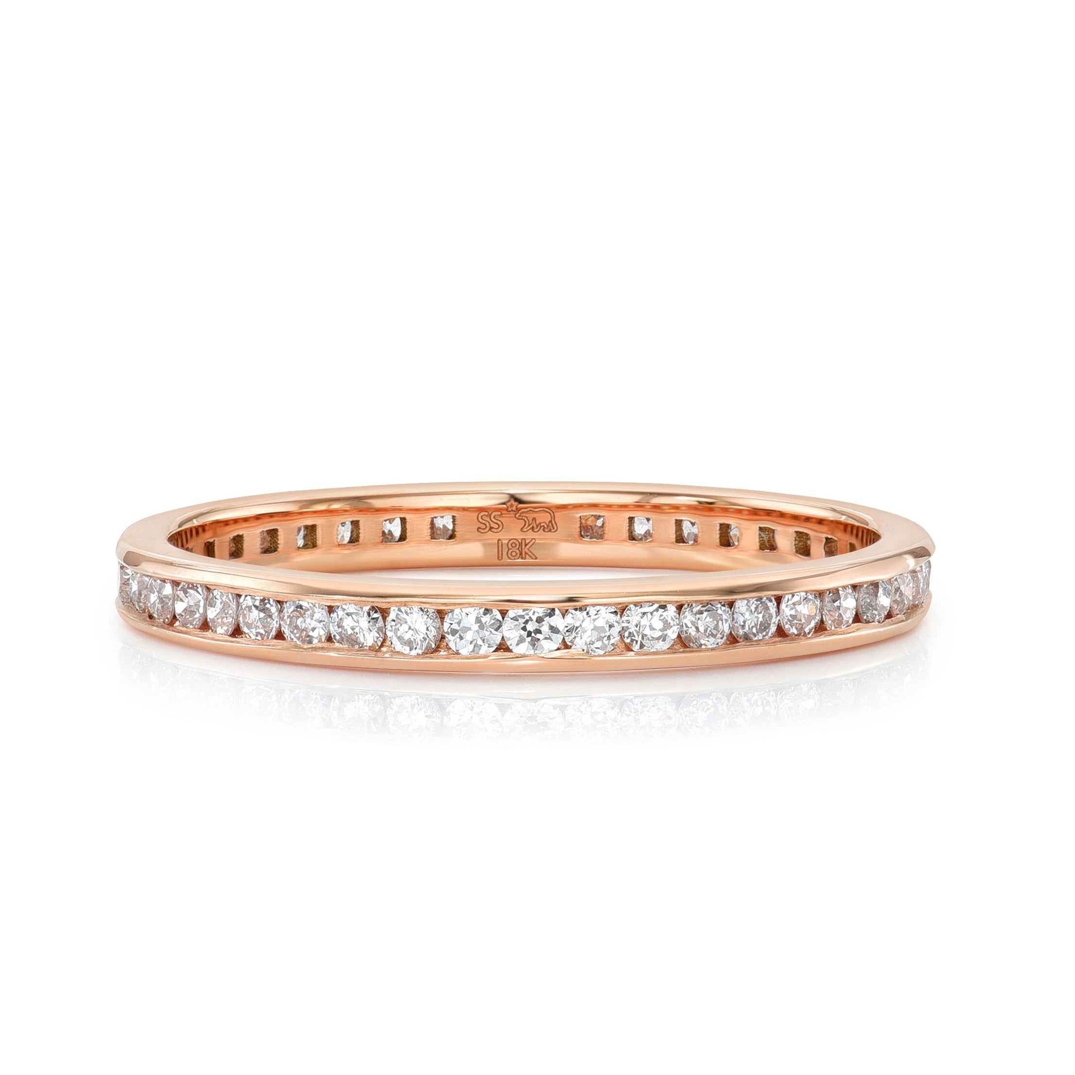 Approximately 0.40ctw old European cut diamonds channel set in a handcrafted eternity band.