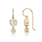 2.47ctw J-K/VS1-SI2 old European cut diamonds with 0.45ctw H-I/VS old European cut accent diamonds bezel set in handcrafted 18K yellow gold double drop earrings.