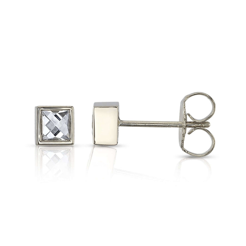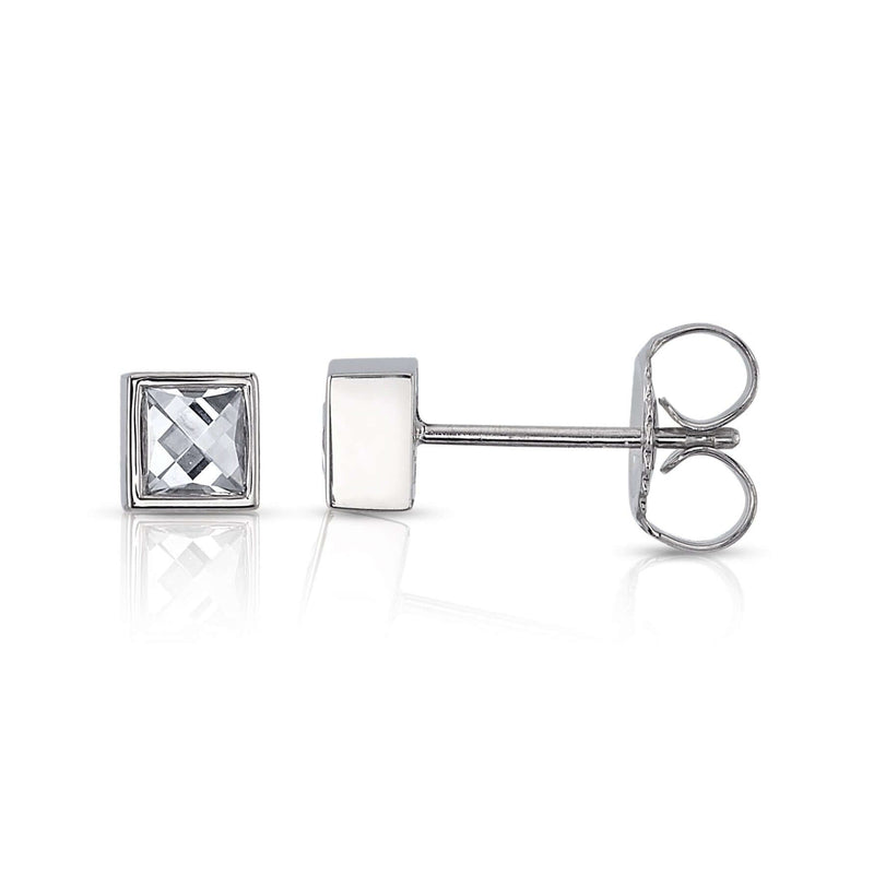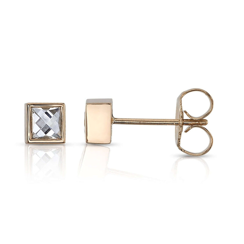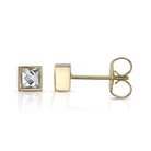 Approximately 0.35-0.45ctw J-K/VS French cut diamonds bezel set in handcrafted stud earrings.