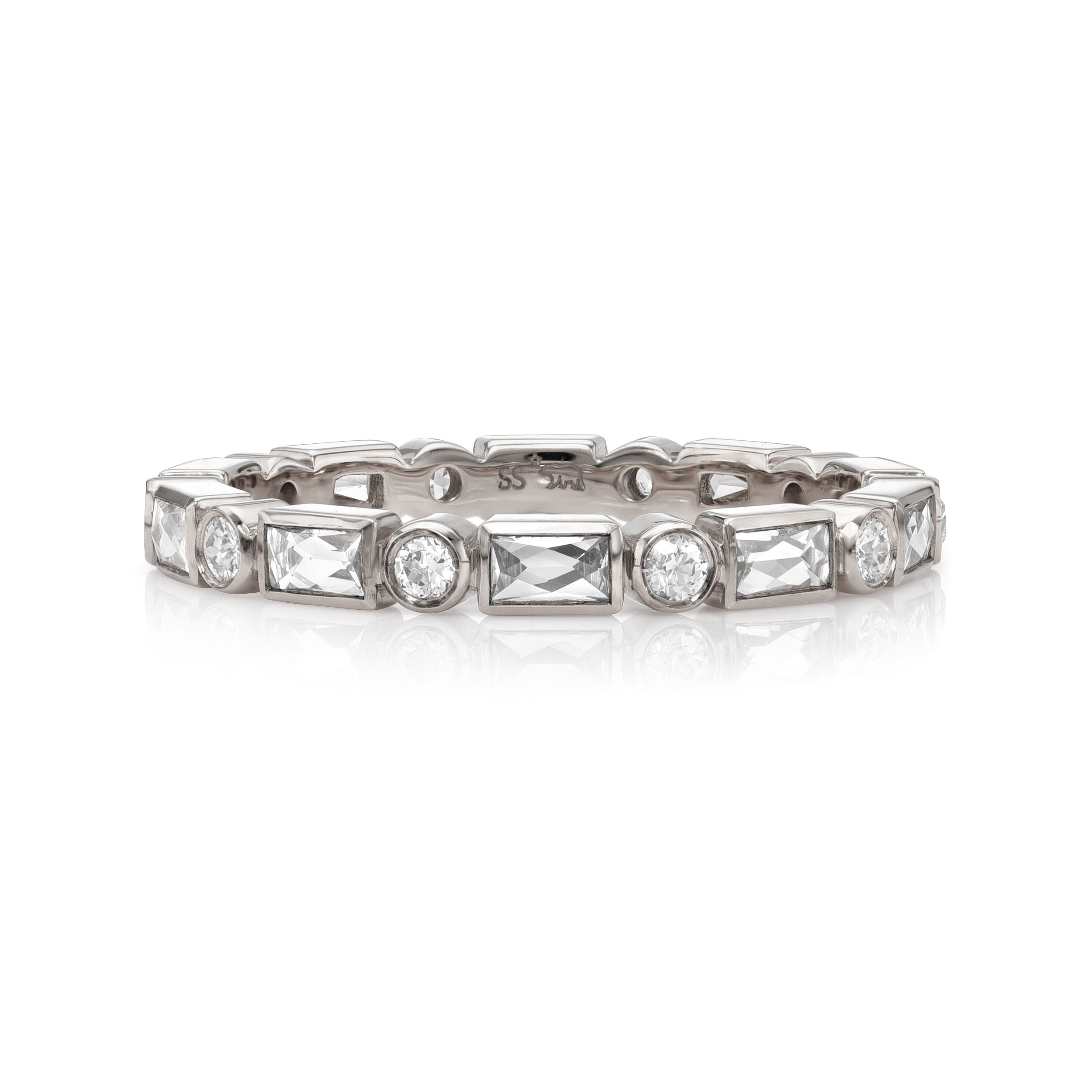If the 4 Cs of Diamond Quality are Cut, Color, Clarity, and Carat Weight, then antique diamonds offer a 5th C: Character. With a unique play of light due to their hand-cut nature, each antique diamond is truly one-of-a-kind. The appeal of these rare diamonds lies in their broad facet patterns, their unique silhouettes, and their ability to dazzle in low and modern lighting conditions. Unlike their modern counterparts, which are cut with modern machinery and to exacting specifications, there are only a finite number of antique diamonds available, making them scarce and highly sought after. Repurposing antique diamonds also reduces environmental impact, which is something we feel very strongly about.
