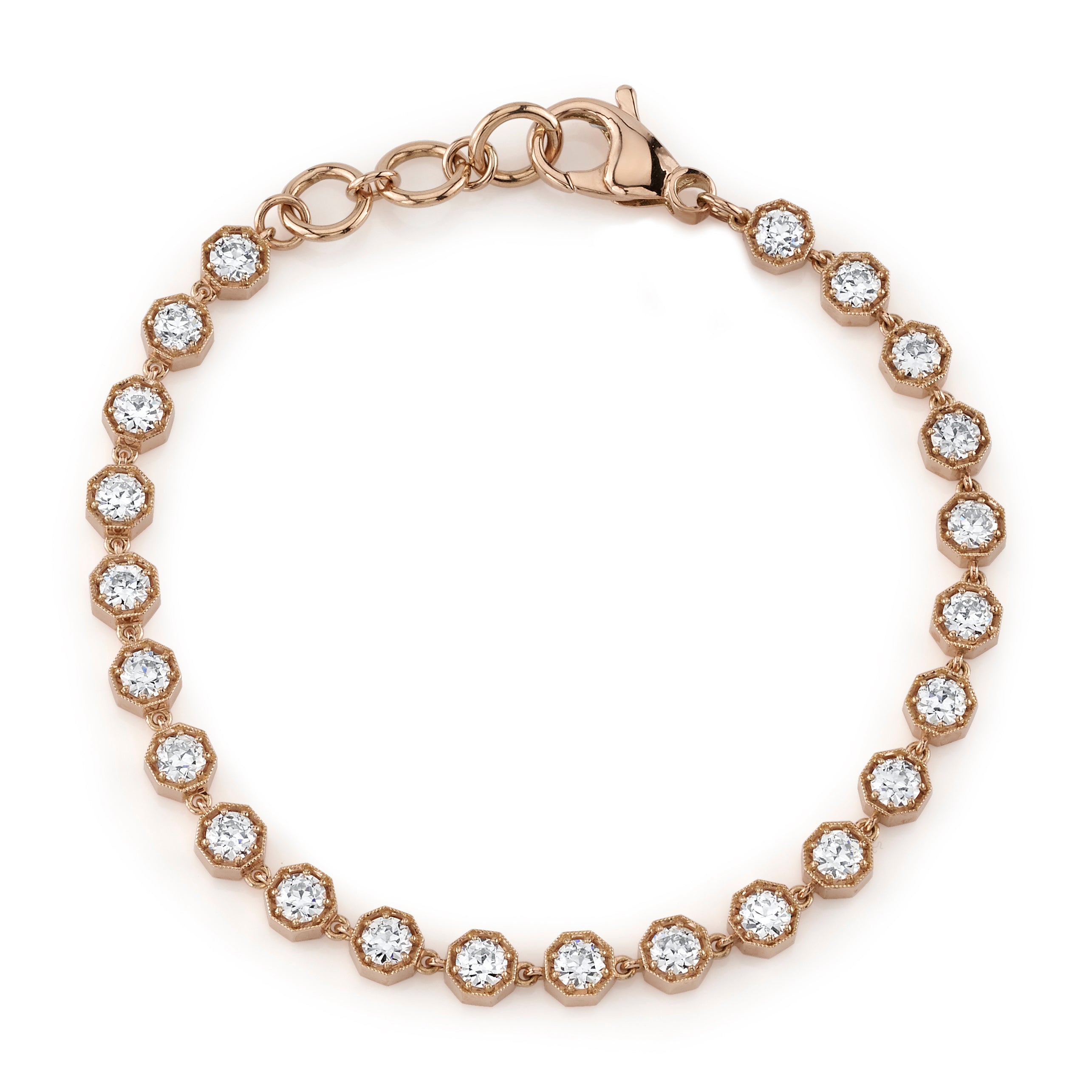 3.94ctw G-H/VS-SI old European cut diamonds prong set on a handcrafted 18K rose gold tennis bracelet.