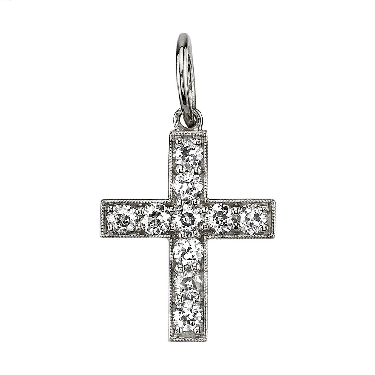 Approximately 0.80ctw old European cut diamonds pavé set in a handcrafted cross pendant. Cross measures 14.20mm x 17mm. Price does not include necklace.
