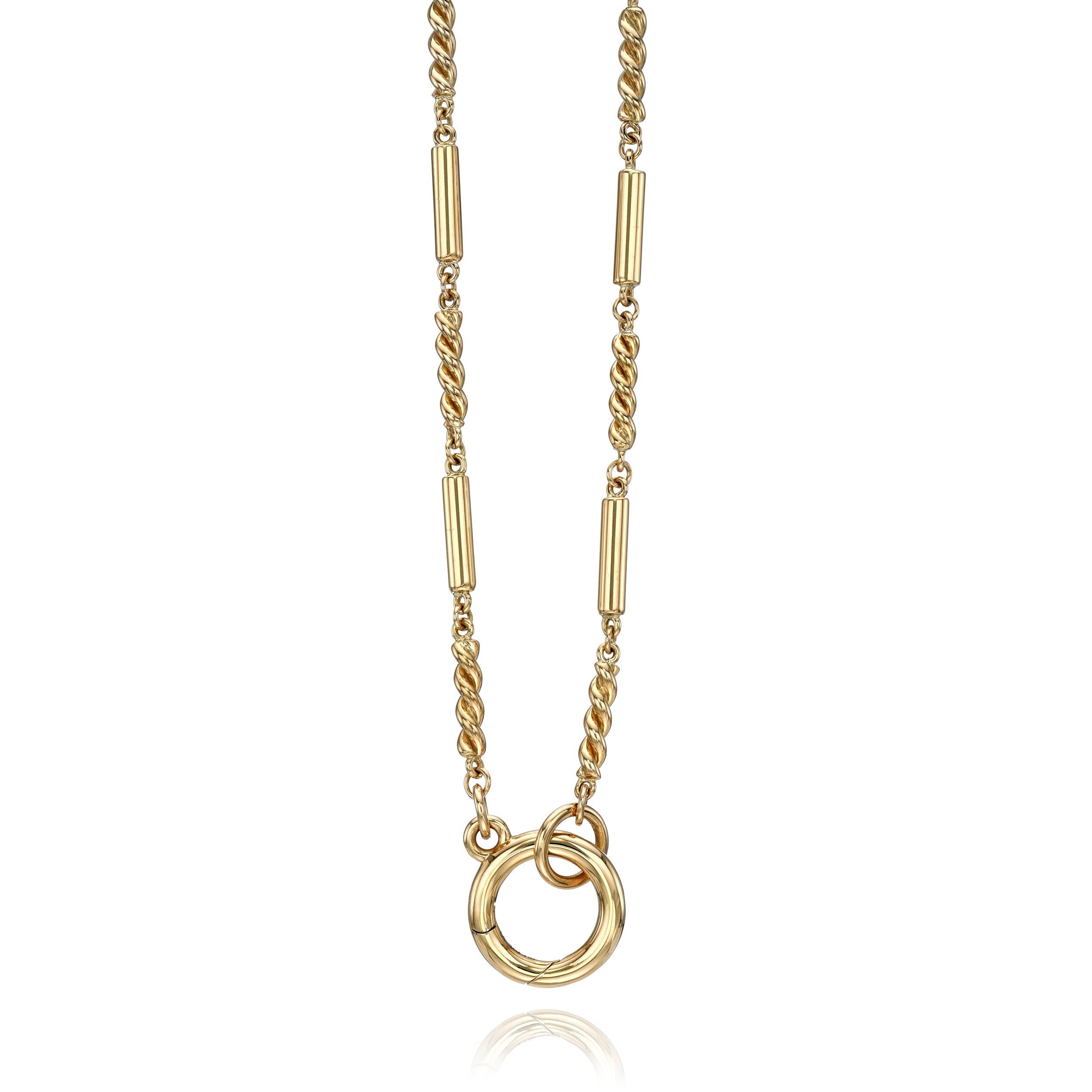 Our handcrafted 18K yellow gold Darla necklace featuring a pendant enhancer.