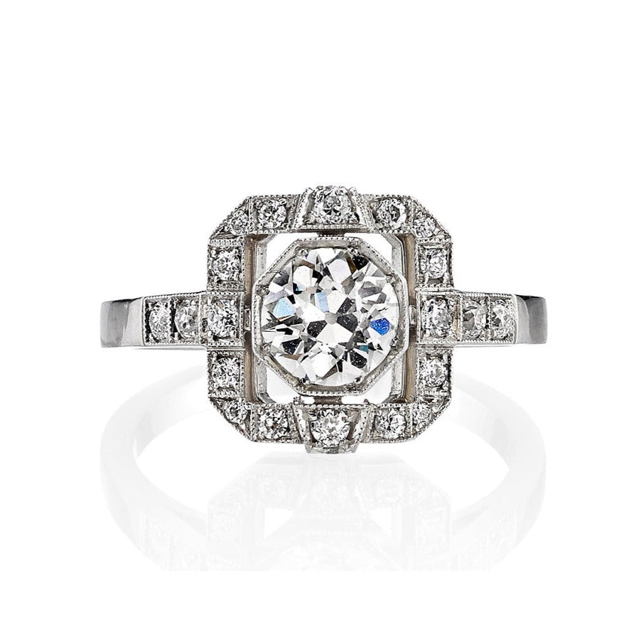 The 19th century brought about techniques that advanced the diamond cutting industry and thus, the old European cut diamond was born. With 58 facets, a small table, high crown angle, circular shape, and open culet, the old European cut diamond became the precursor to the modern round diamonds that we see today. Our vintage old European cut diamonds, cut primarily in the 1920s and 1930s, are used in many of our designs, from larger center stones to small, pave set diamonds.