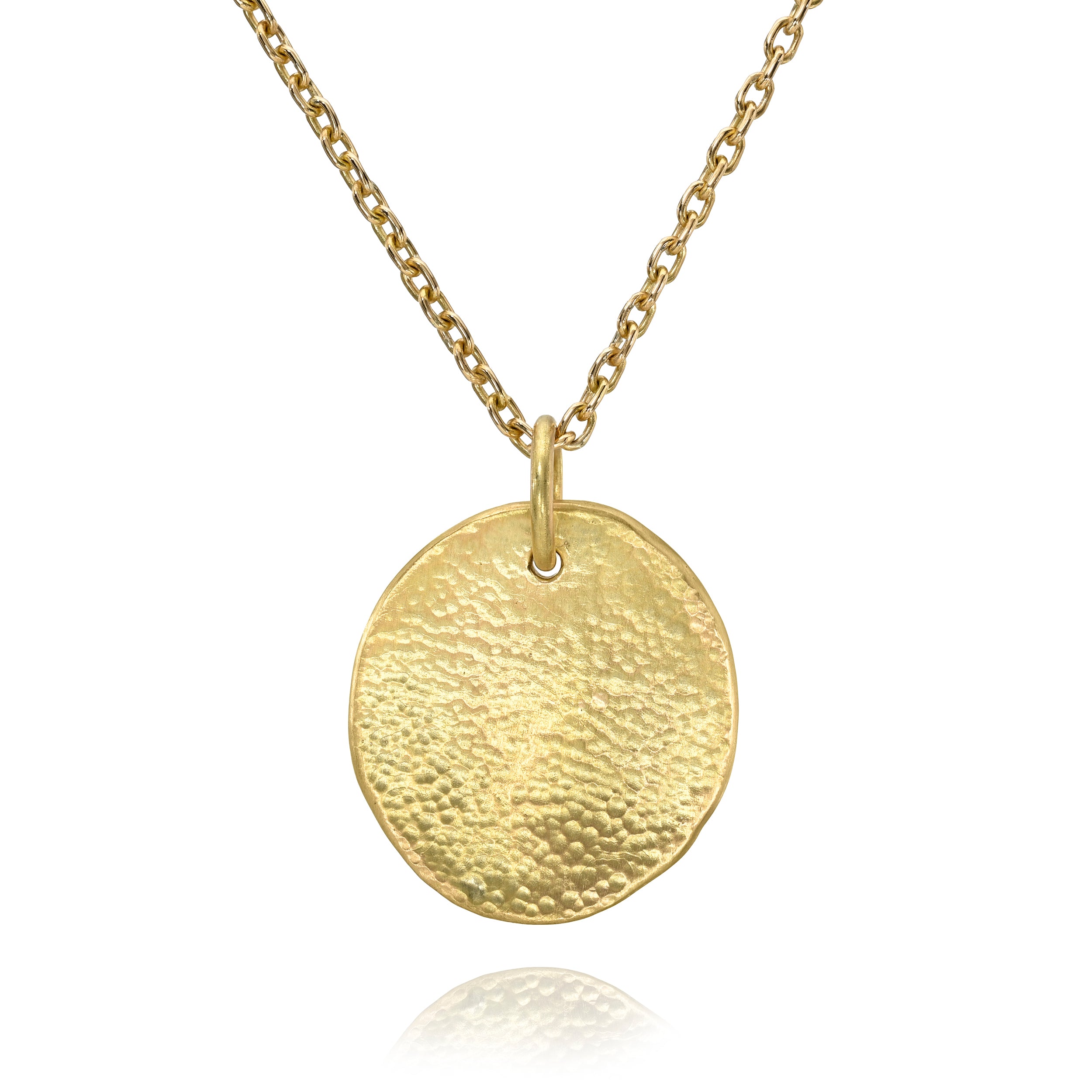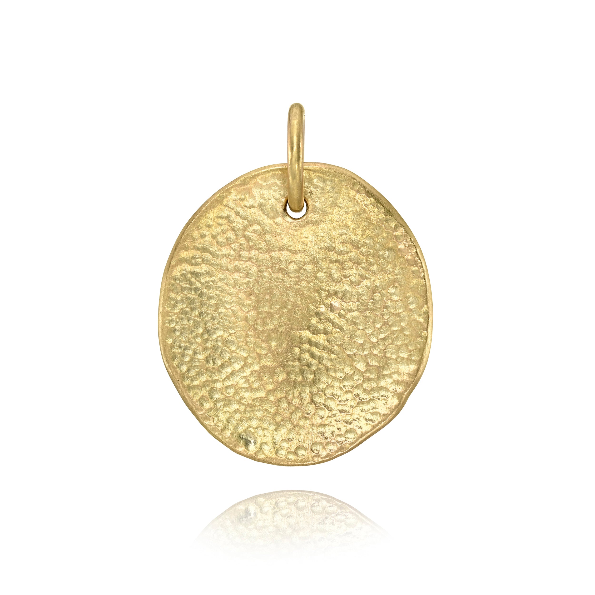 Handcrafted 18K yellow gold medallion pendant in a hammer finish.