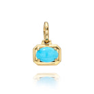 Oval turquoise cabochon prong set in a handcrafted 18K yellow gold pendant.
