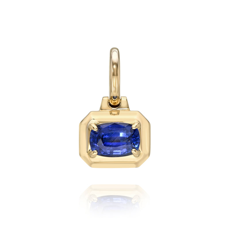 1.38ct GIA certified cushion cut sapphire prong set in a handcrafted 18K yellow gold pendant.