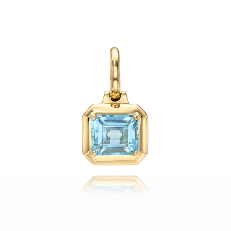 1.80ct emerald cut aquamarine prong set in a handcrafted 18K yellow gold pendant.
