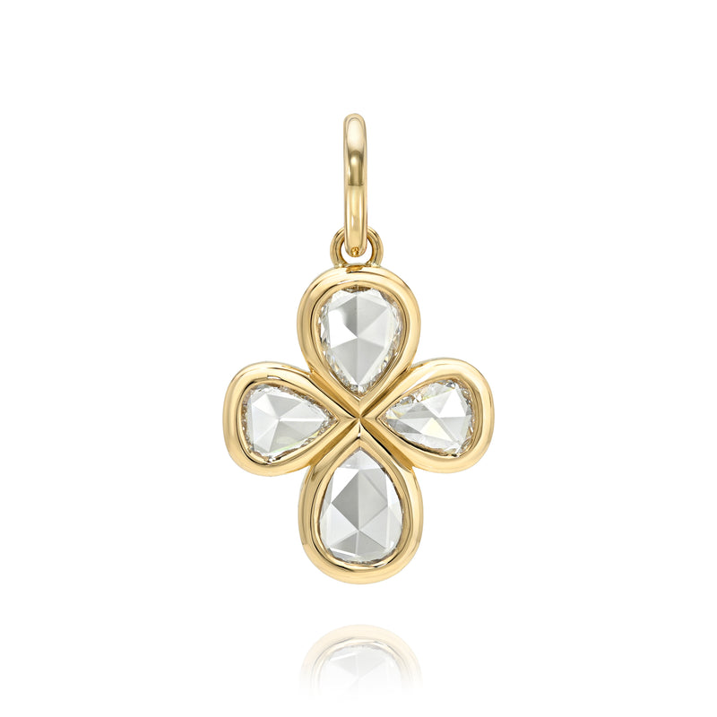 Originating in India in the 18TH century, rose cut diamonds dazzled in the candle-lit courts of the Mughals. Flat bottomed with a domed, faceted top, rose cut diamonds can have any silhouette; it is the triangular “rose-like” facet pattern on the top of the diamond that distinguishes a rose cut from any other diamond shape. The beauty of a rose cut diamond is in the subtlety of its shine – much like light reflecting off the surface of water. Our designs incorporate both antique and mindfully sourced modern rose cut diamonds.