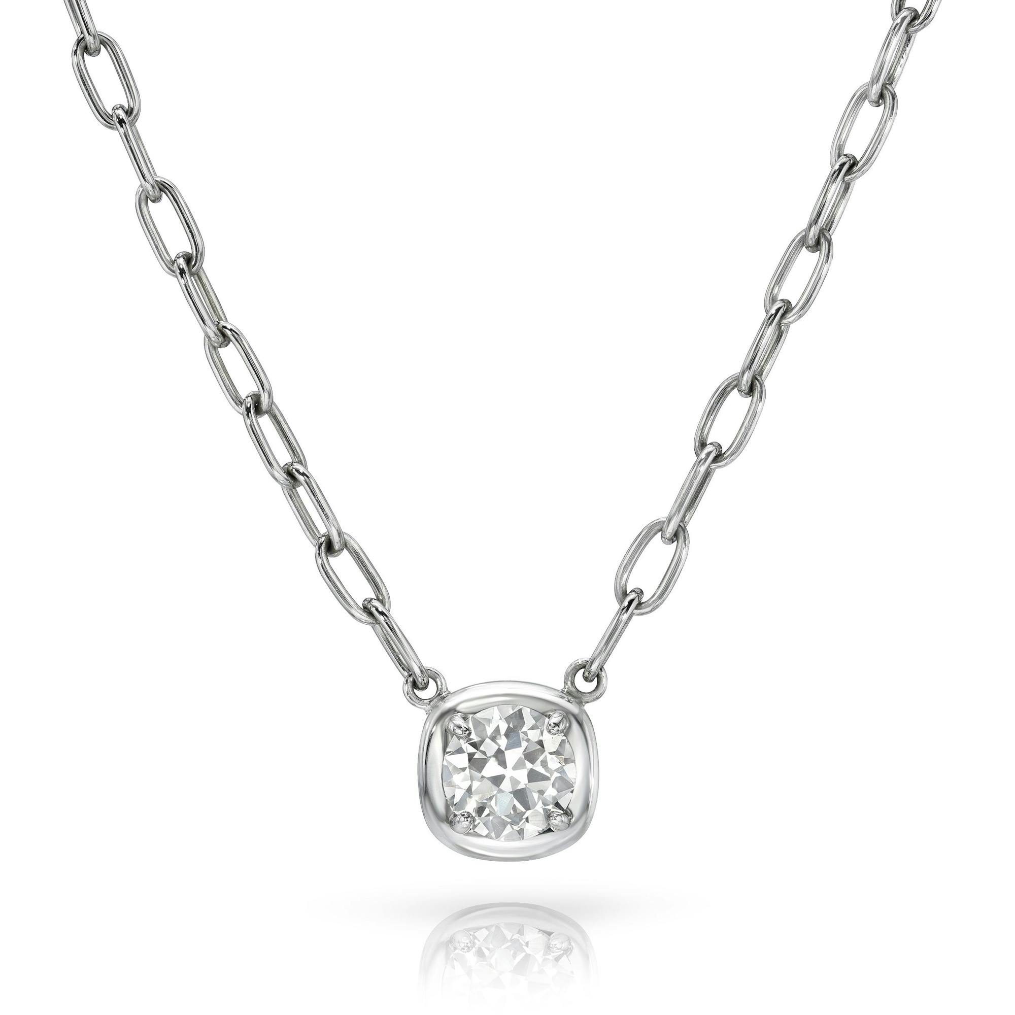 1.56ct K/VS1 GIA certified old European cut diamond prong set on our handcrafted platinum Bond chain.