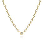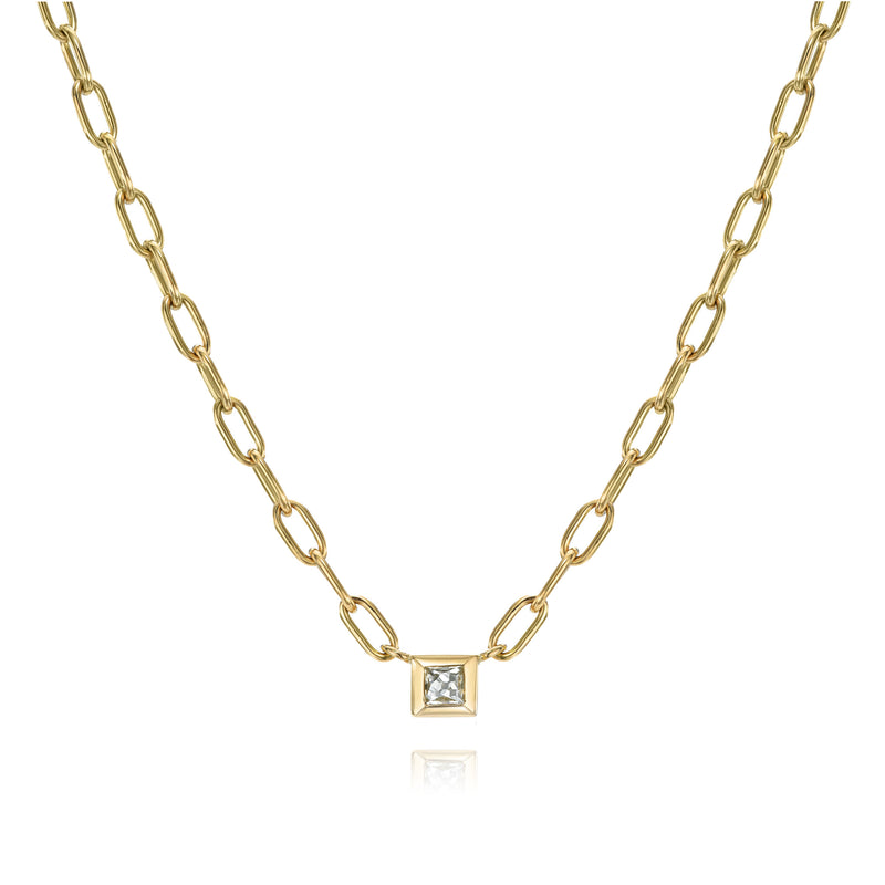 0.25ct F/VS1 French cut diamond bezel set on a handcrafted 18K yellow gold Bond chain.