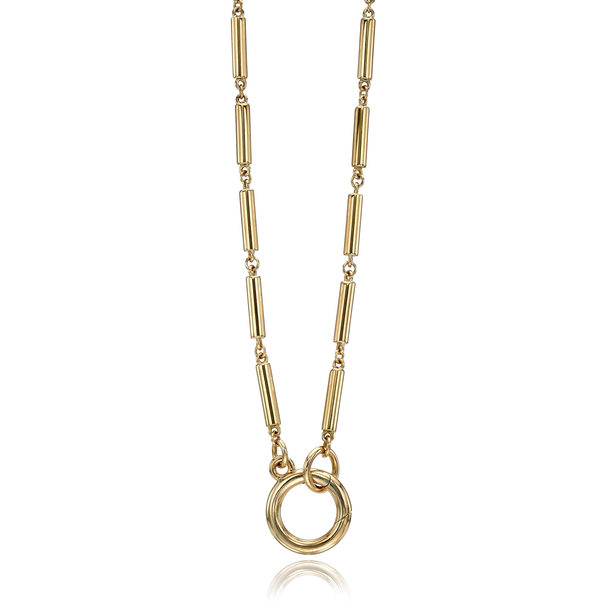 Our handcrafted 18K yellow gold Leda necklace featuring a pendant enhancer.