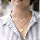 Vintage inspired 18K yellow gold bar necklace. Necklace measures 17". Make it personal! Price includes monogrammed engraving of up to three letters in any of the styles shown above - please be sure to specify before placing your order. Please contact us to inquire about additional customization.