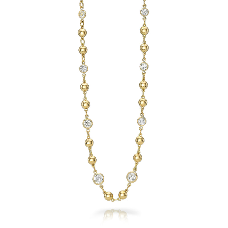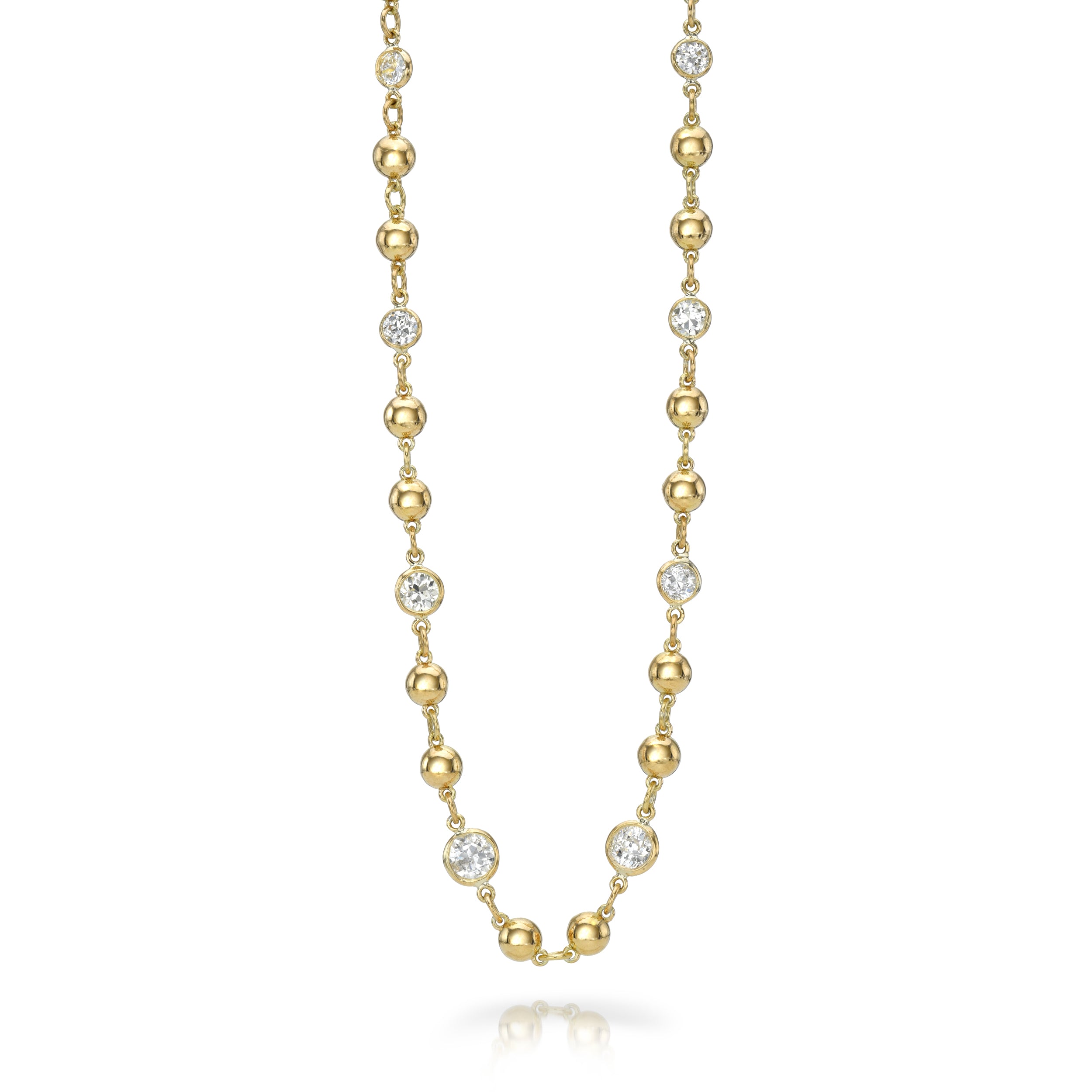3.66ctw H-L/VS-I various old cut and round brilliant cut diamonds set on our handcrafted 18K yellow gold Mirella necklace.