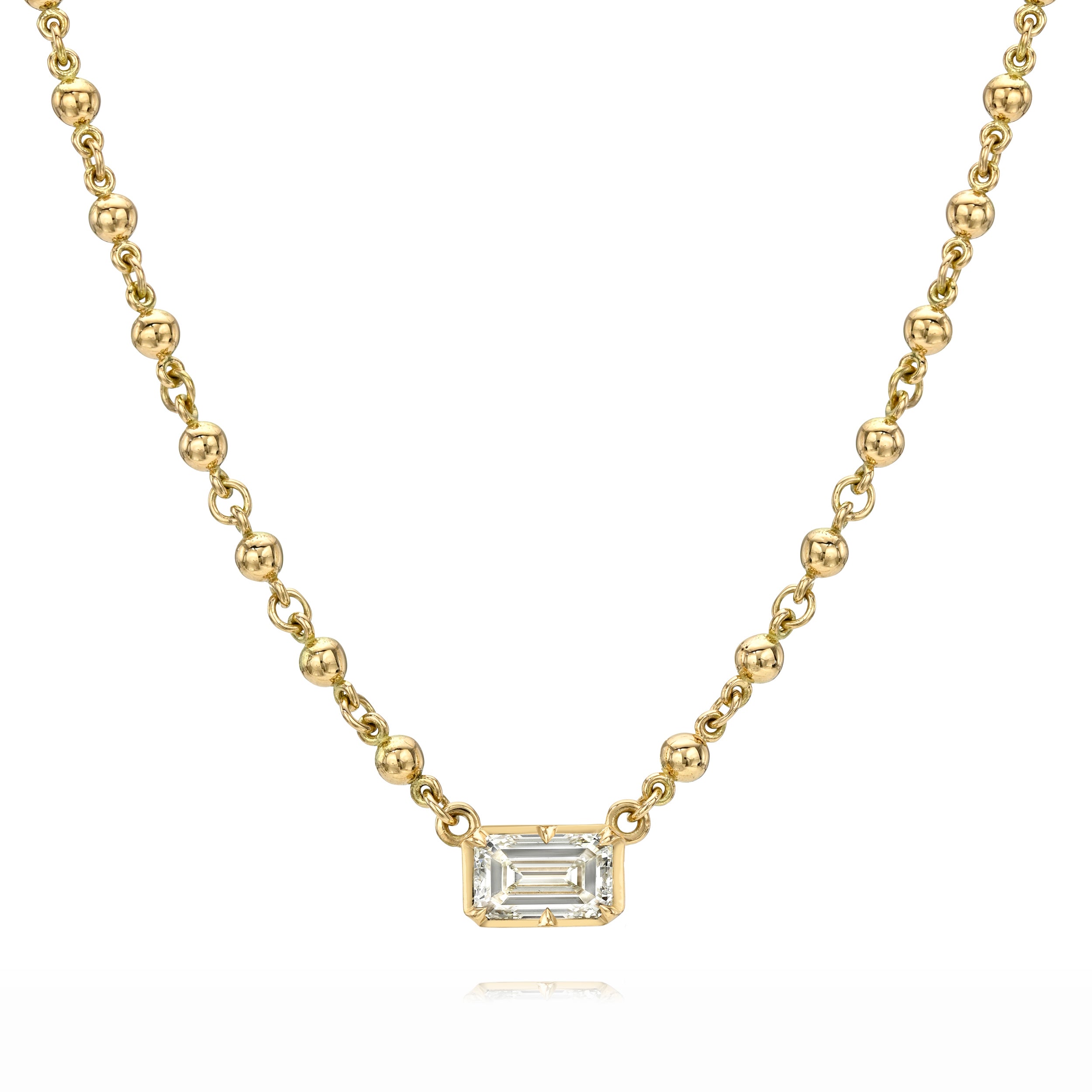 1.00ct M/VS1 GIA certified emerald cut diamond prong set on our handcrafted 18K yellow gold Rosary chain.