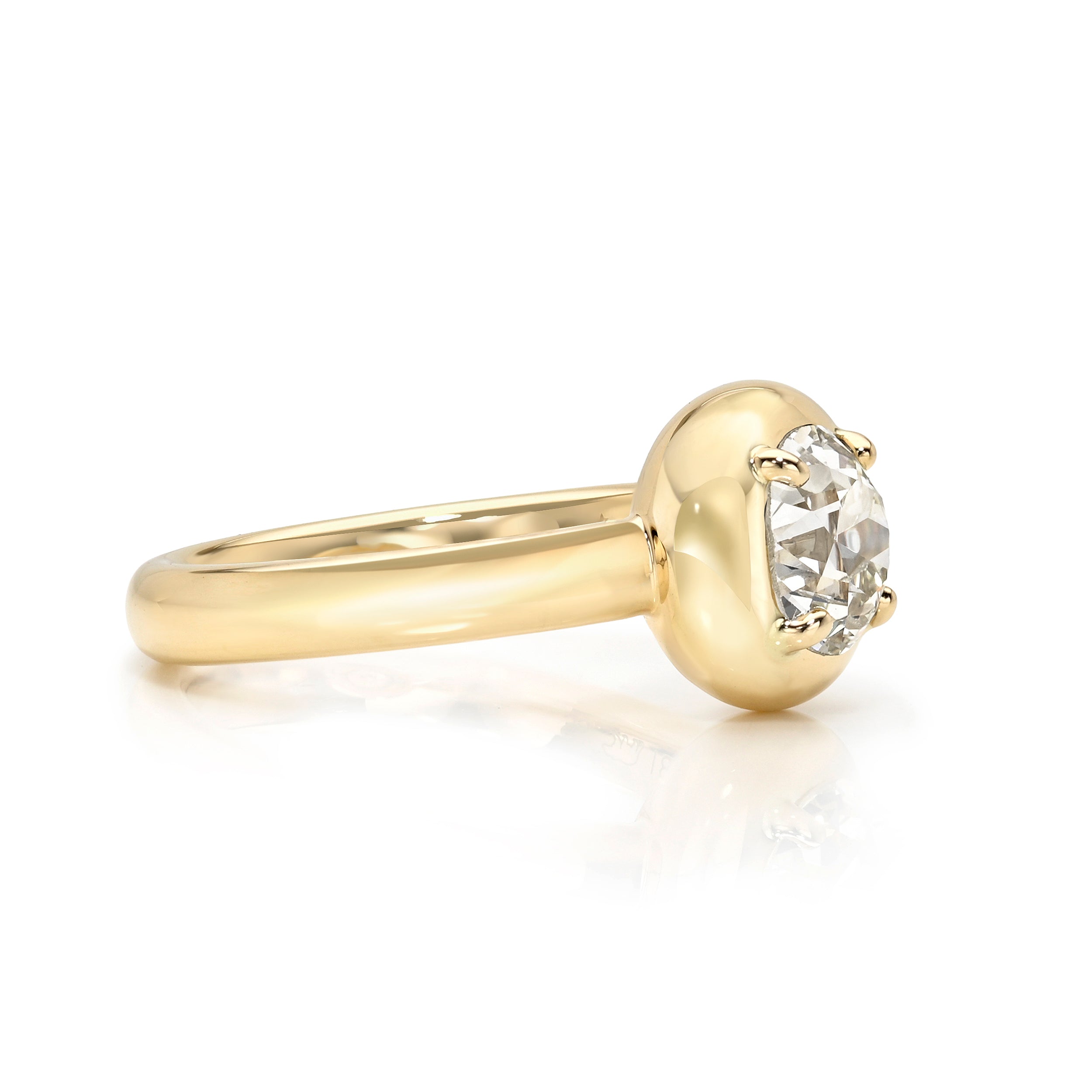 1.29ct M/VS2 GIA certified old European cut diamond prong set in a handcrafted 18K yellow gold mounting.