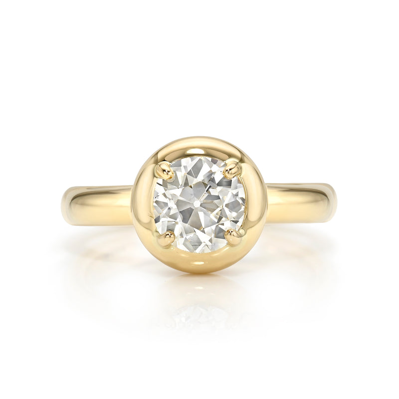 The 19th century brought about techniques that advanced the diamond cutting industry and thus, the old European cut diamond was born. With 58 facets, a small table, high crown angle, circular shape, and open culet, the old European cut diamond became the precursor to the modern round diamonds that we see today. Our vintage old European cut diamonds, cut primarily in the 1920s and 1930s, are used in many of our designs, from larger center stones to small, pave set diamonds.