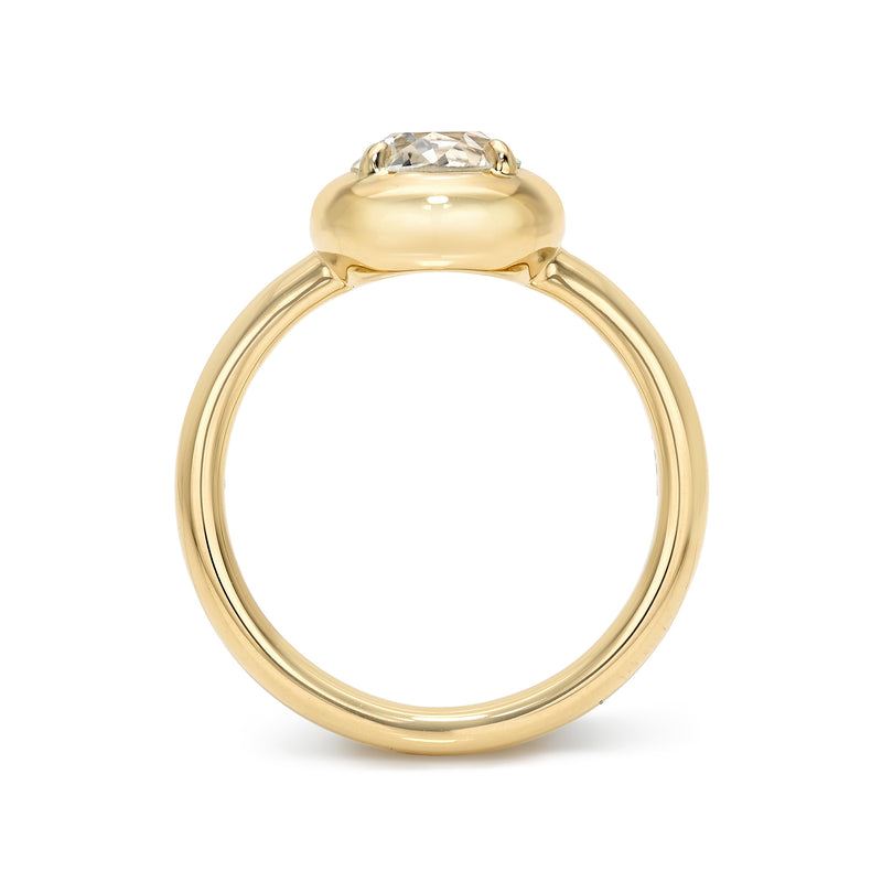 If the 4 Cs of Diamond Quality are Cut, Color, Clarity, and Carat Weight, then antique diamonds offer a 5th C: Character. With a unique play of light due to their hand-cut nature, each antique diamond is truly one-of-a-kind. The appeal of these rare diamonds lies in their broad facet patterns, their unique silhouettes, and their ability to dazzle in low and modern lighting conditions. Unlike their modern counterparts, which are cut with modern machinery and to exacting specifications, there are only a finite number of antique diamonds available, making them scarce and highly sought after. Repurposing antique diamonds also reduces environmental impact, which is something we feel very strongly about.