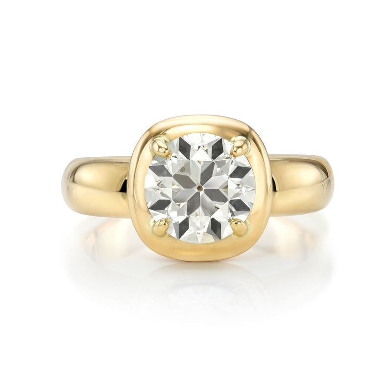 1.74ct M/VS1 GIA certified old European cut diamond prong set in a handcrafted 18K yellow gold mounting.