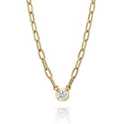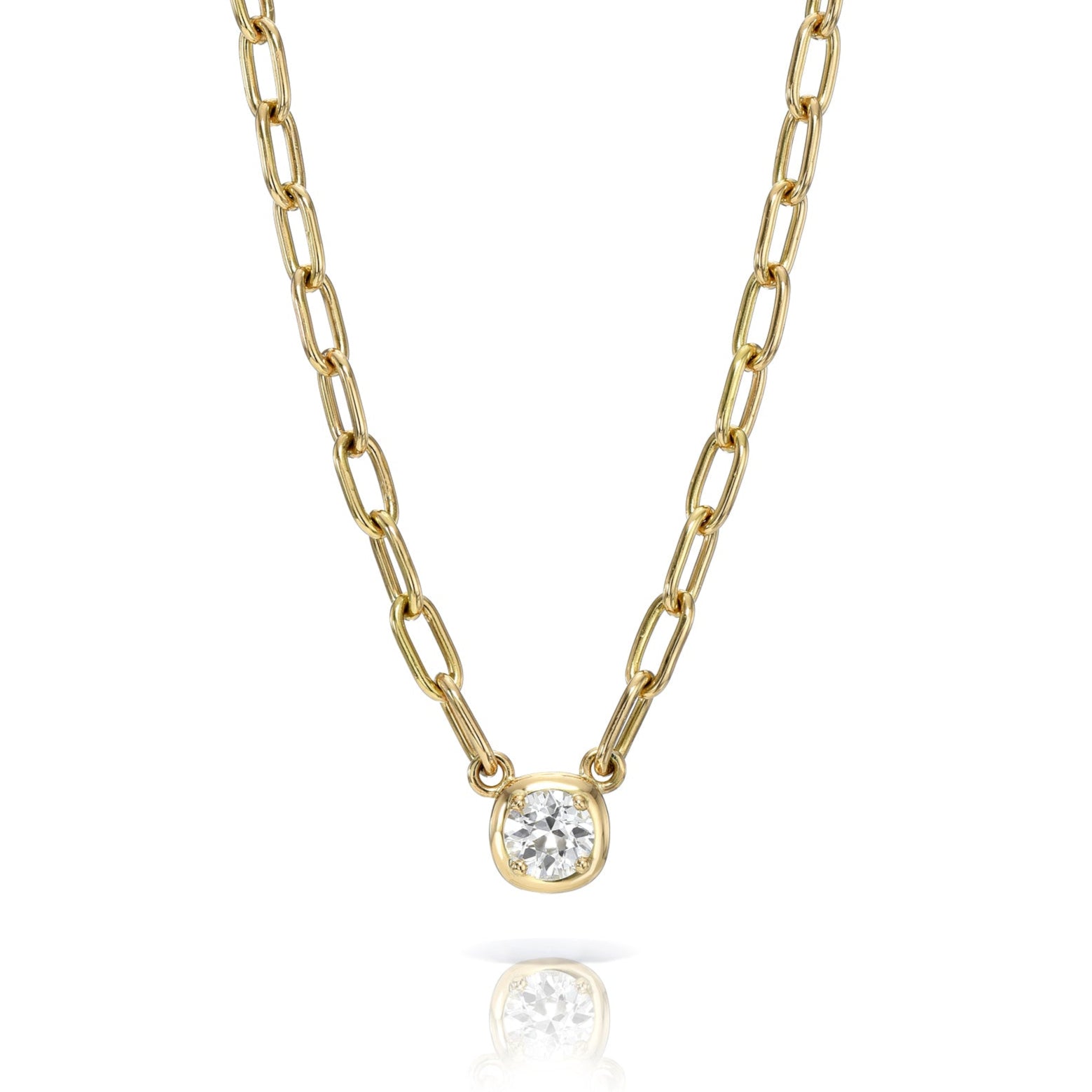 0.58ct M/VS1 GIA certified old European cut diamond prong set on our handcrafted 18K yellow gold Bond chain.