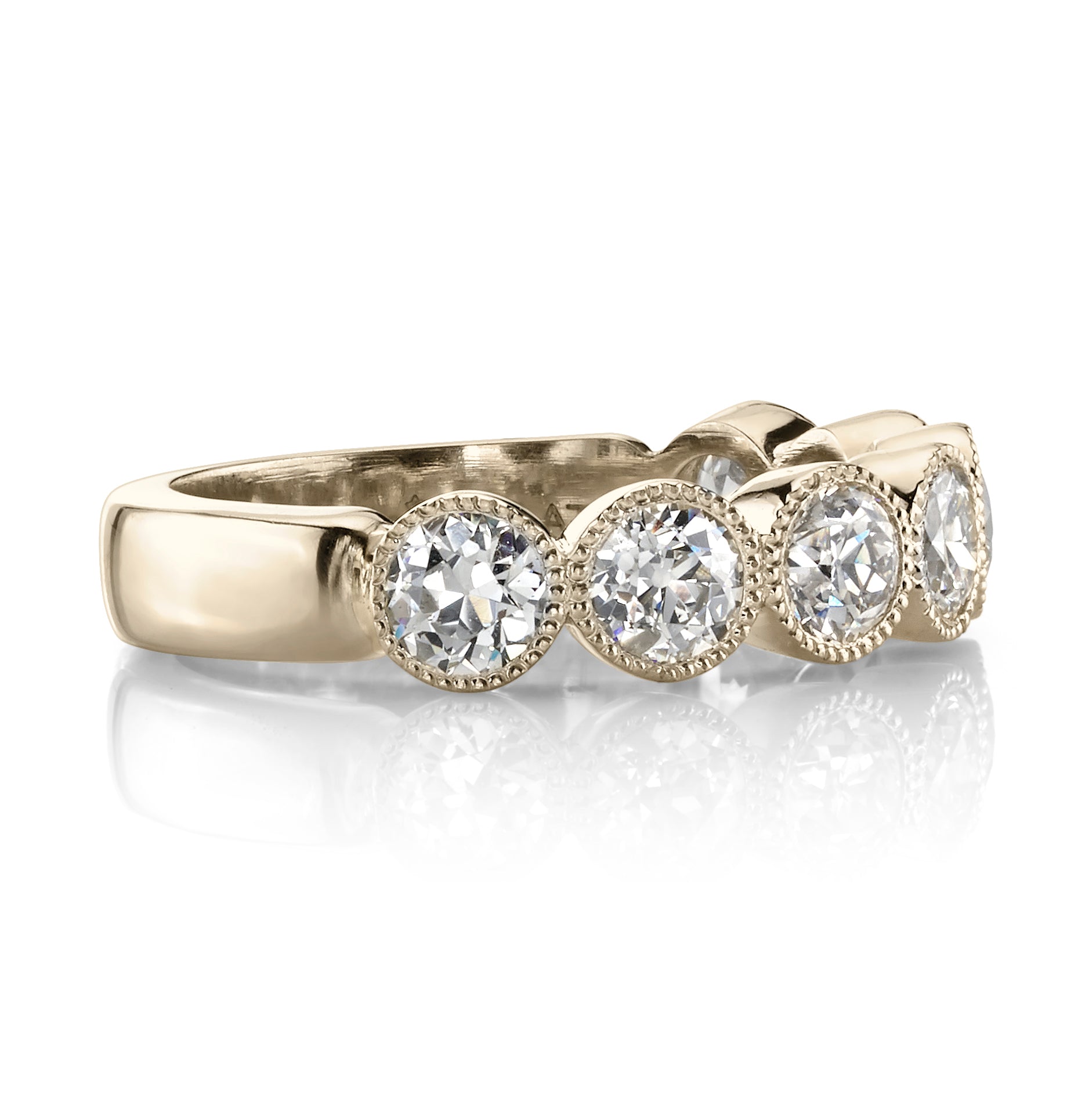 Approximately 1.50-1.70ctw old European cut diamonds bezel set in a handcrafted half-eternity band.