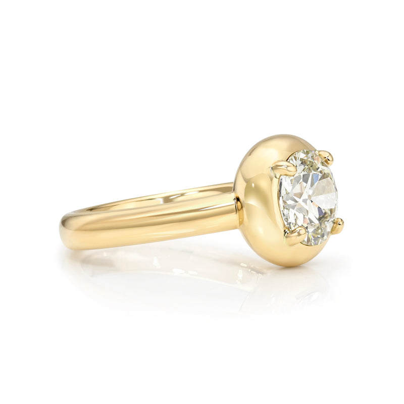1.60ct M/VS2 GIA certified old European cut diamond prong set in a handcrafted 18K yellow gold mounting.